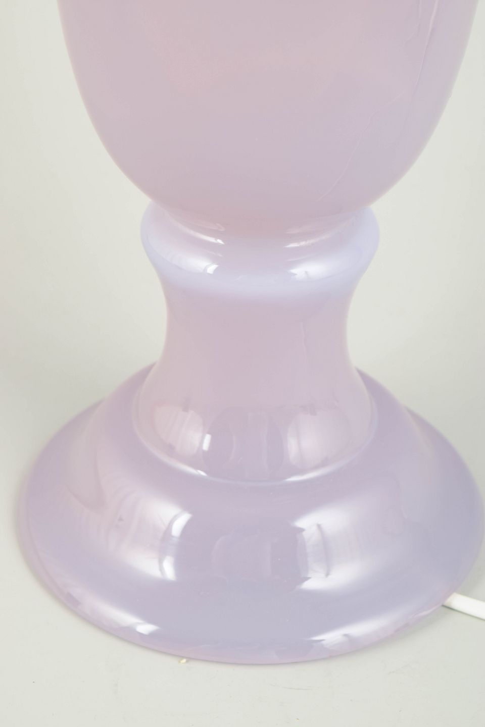 Stor bordlampe i turkisfarvet kunstglas, 1980’erne.Elegant bordlampe i mundblæst glas med blød turkis/lilla tone og klassisk urneformet fod. Original fatning, ledning udskiftet senere.