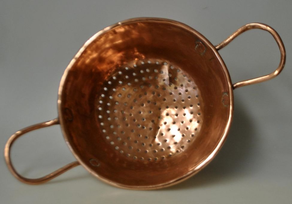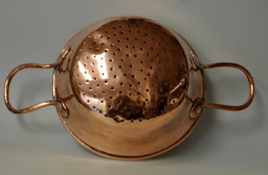 Kobber dørslag, 19. årh. Danmark. Ustemplet. L: 35 cm. H.: 9 cm. Dia.: 21 cm.Proveniens: Det nu nedlagte Svaneapotek i Randers.