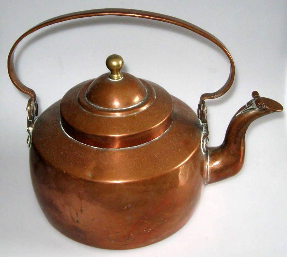 Kobberkedel, Danmark. 19. årh. Med hank og tud. Stemplet Kobbermøllen 1808 -1839. Højde med hank. 28 cm.Emne nummer: 6382