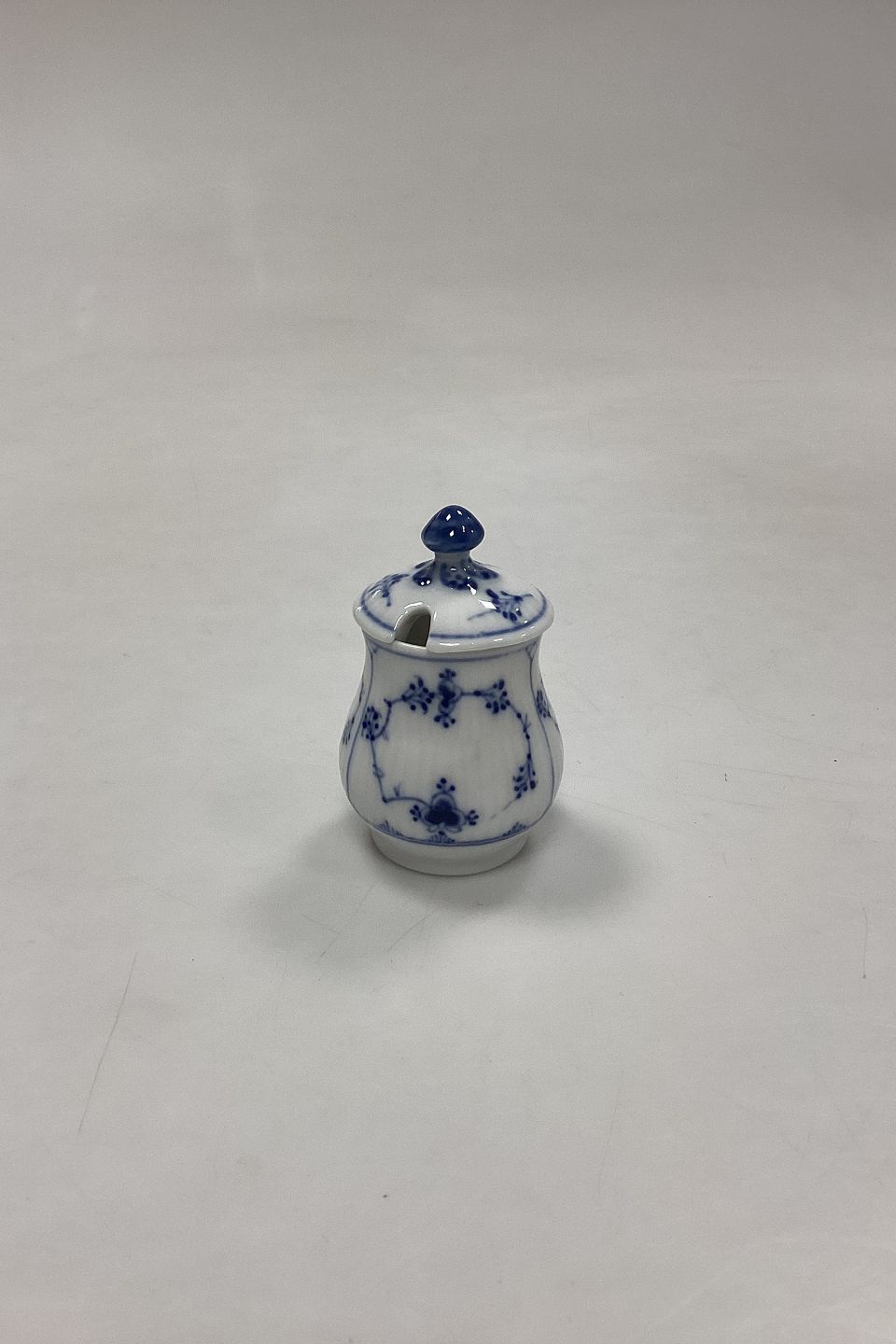 Royal Copenhagen Musselmalet Riflet Lille Sennepskrukke No. 358. Måler 7 cm / 2,75 in. 1. SorteringLager: 1