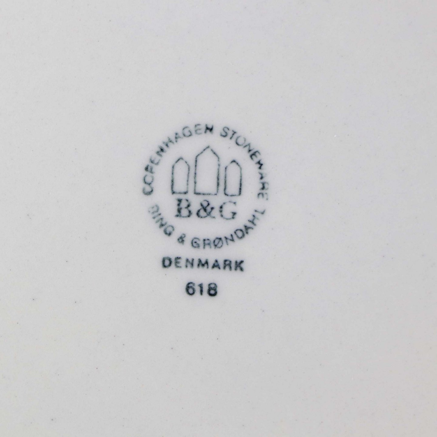 Flad frokosttallerken i stentøj fra os ukendt stel Nr. 618Producent Bing & Grøndahl