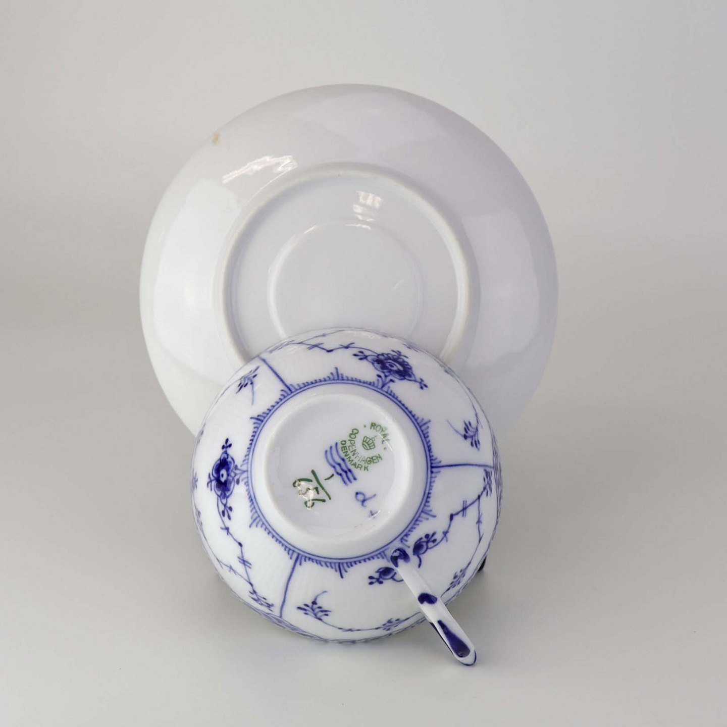 Stor tekop med underkop i kongeligt porcelæn fra stellet Musselmalet Halvblonde. Nr. 1/656 og 1/626Design Arnold Krog