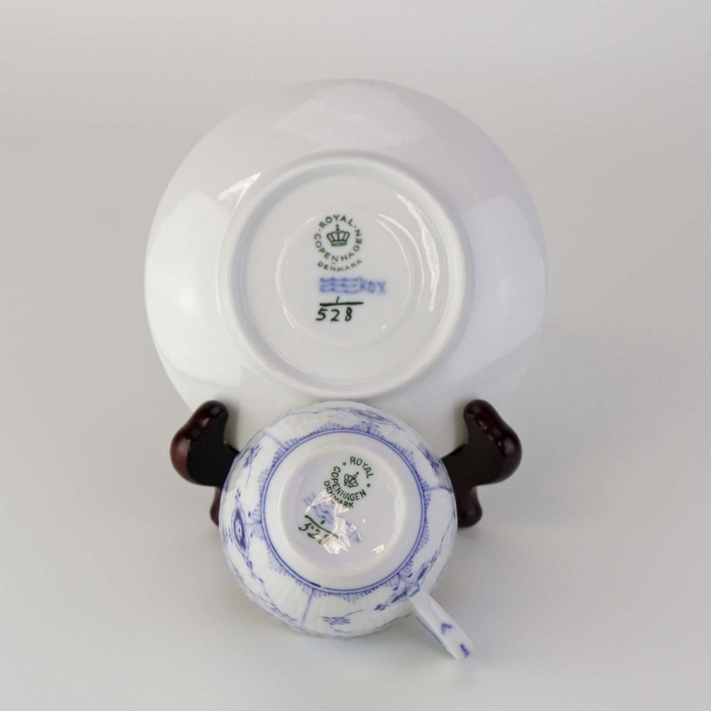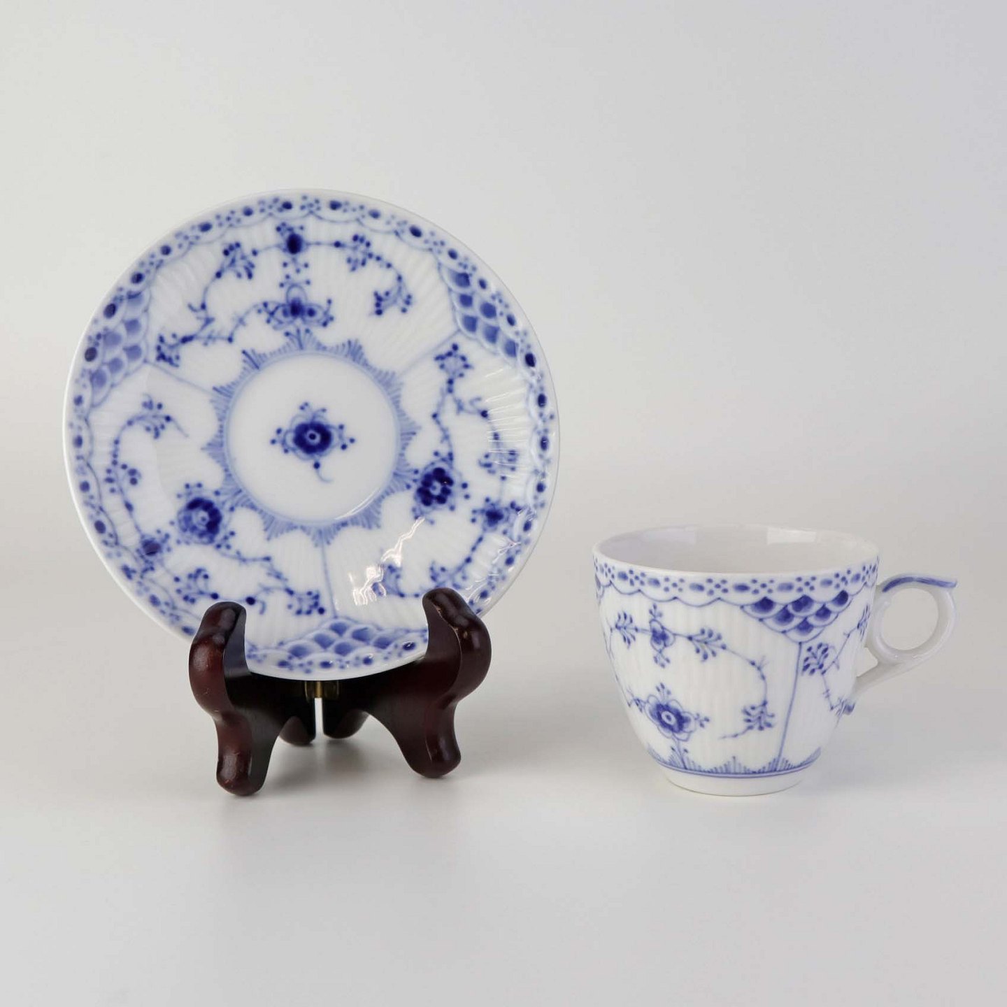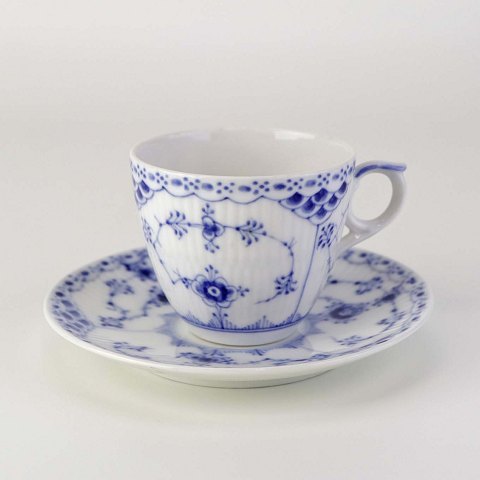 Mokkakop med underkop i kongeligt porcelæn fra stellet Musselmalet Halvblonde. Nr. 1/528Design Arnold Krog