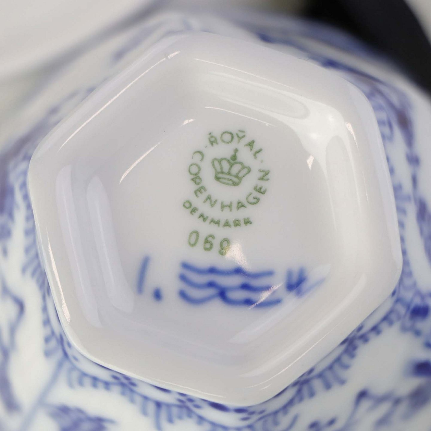 Kaffekop med underkop i kongeligt porcelæn fra stellet Musselmalet Helblonde. Nr. 069 og 1/1036Design Arnold Krog