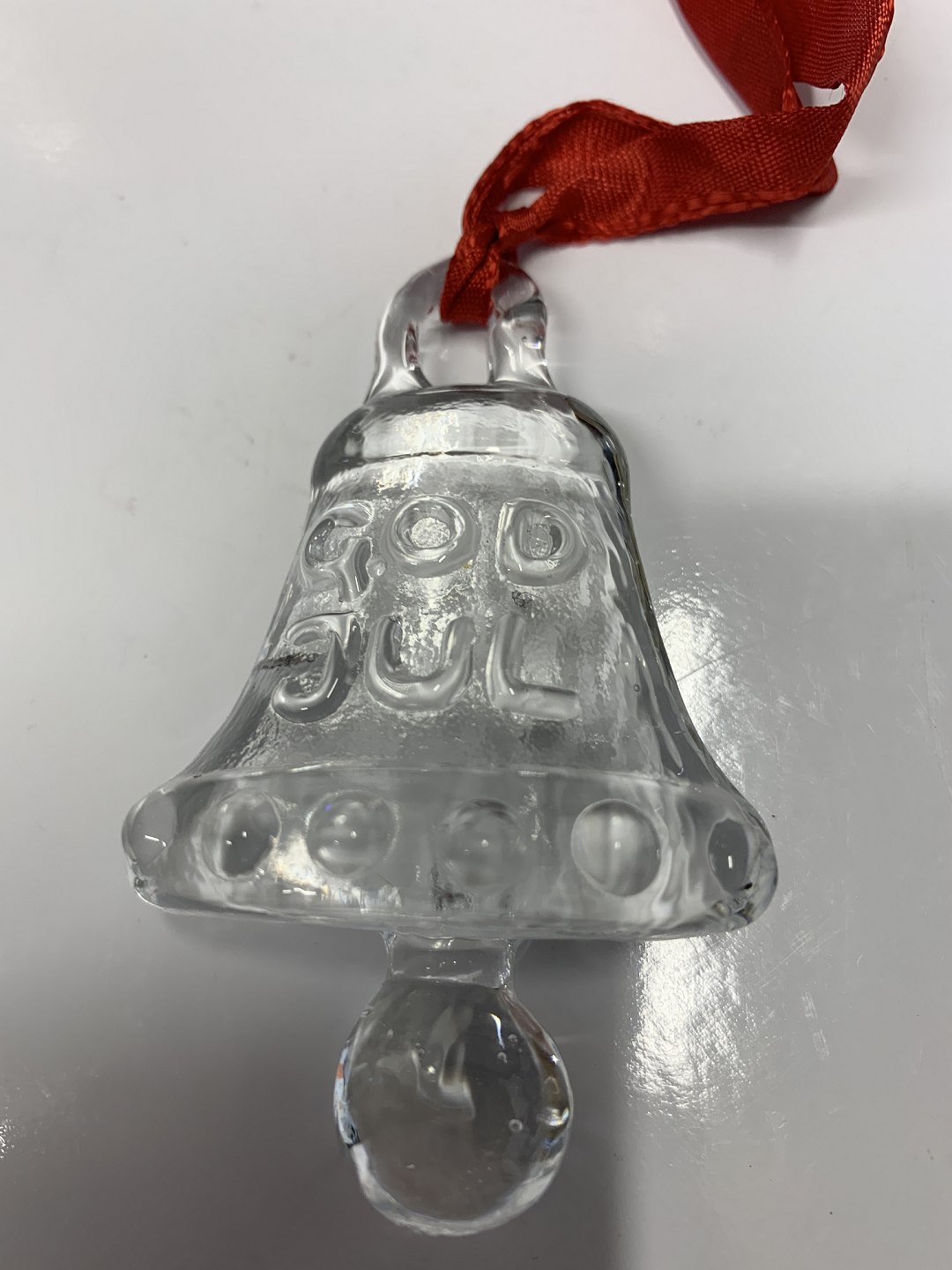 Super flot juleophæng i glas, designet af Bertil Vallien for Kosta Boda. Hæng den søde juleklokke på juletræet, en gren, i vinduet eller ned fra loftet. Den fremstår i flot og hel stand.Højde: 8 cm.