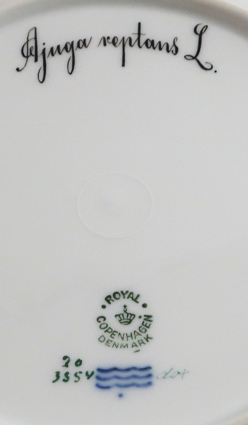 Royal Copenhagen, Flora Danica. Frokost tallerken med gennemskåret bort. Design #3554. Diameter 23 cm. (1 sortering). Ajuga reptans L Udstiller