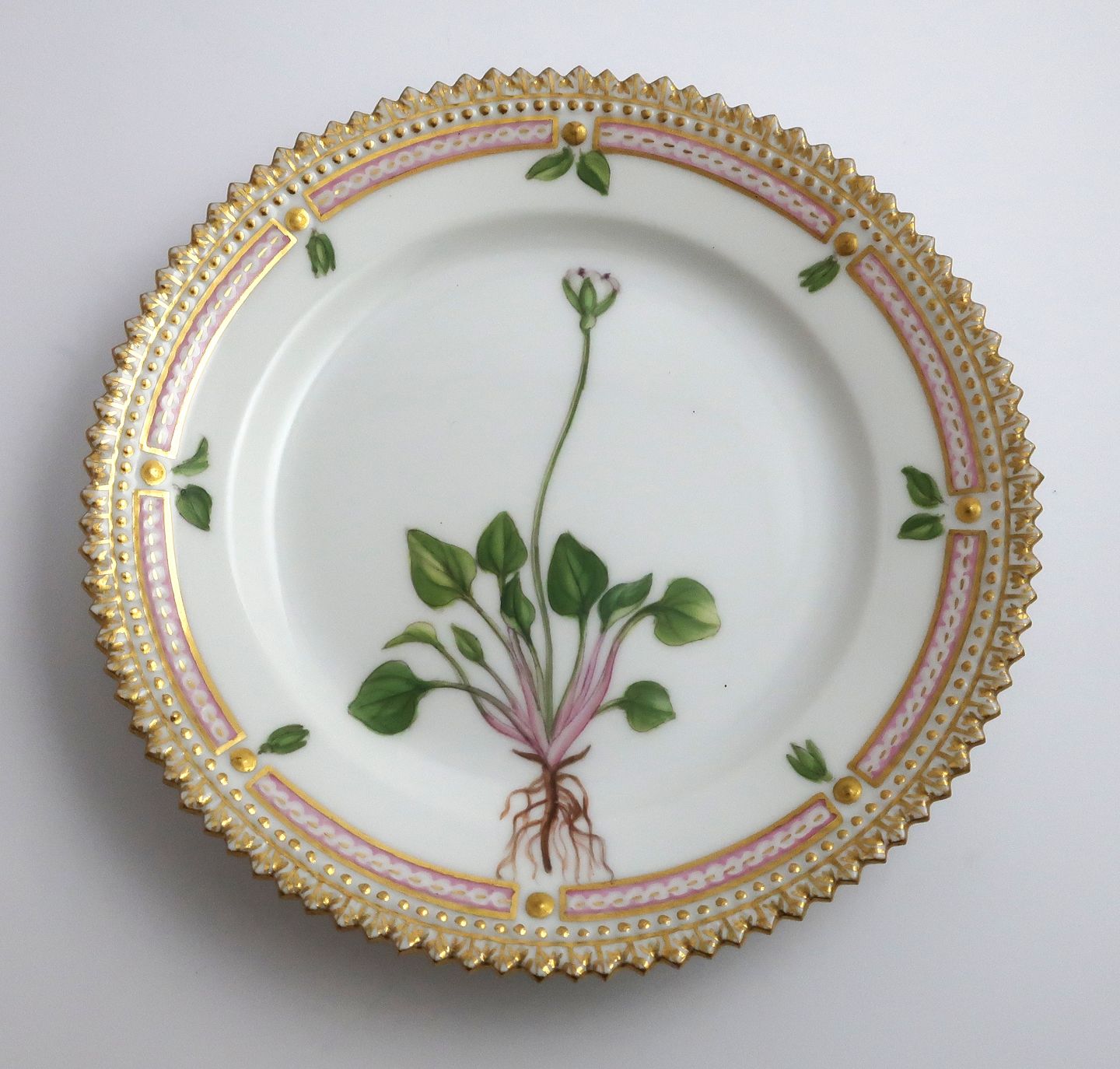Royal Copenhagen, Flora Danica. Kage tallerken. Design #3552. Diameter 14,5 cm. (1 sortering). Parnassia kotzebue Udstiller