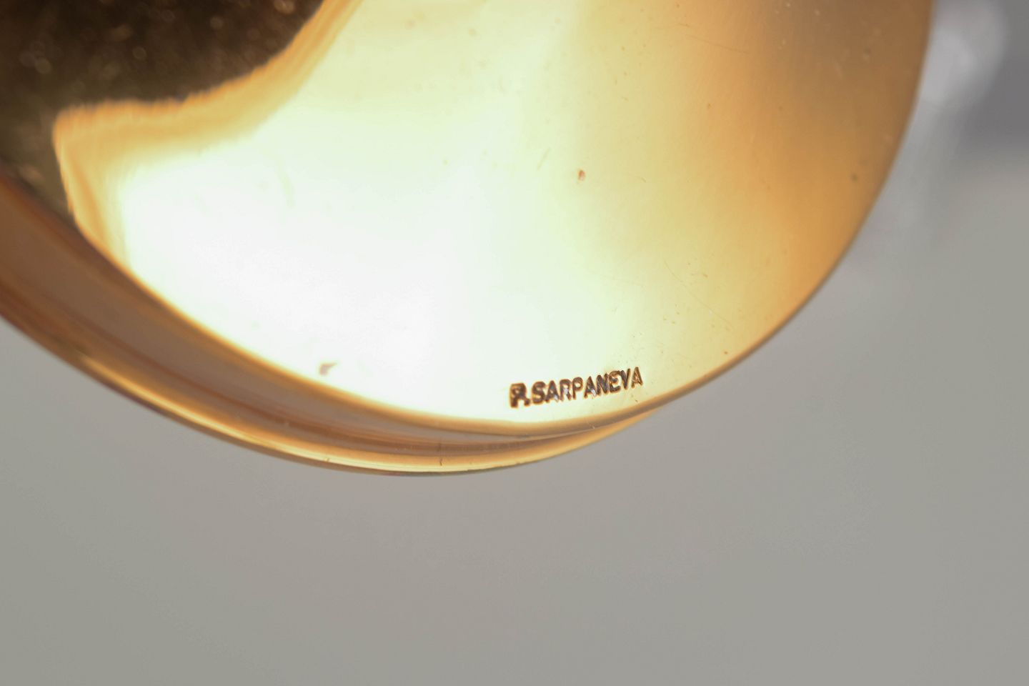 Pentti Sarpaneva (1925–1978) var en fremtrædende finsk designer, kendt for sine skulpturelle arbejder i bronze, messing og sølv. Han arbejdede både med smykker og kunsthåndværk, hvor de gennemgående temaer var strukturer, relief og naturinspirerede former. Hans arbejder for bl.a. Turun Hopea og Oy Kumela glasværk er i dag meget eftertragtede samlerobjekter og repræsenterer en markant del af den finske modernistiske designarv.