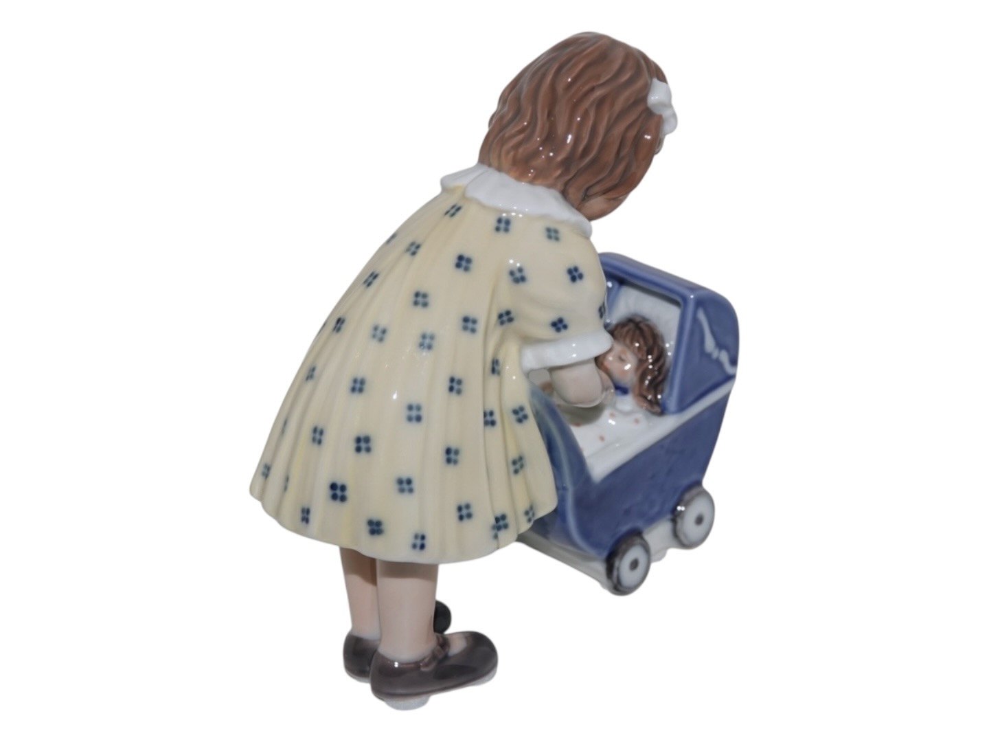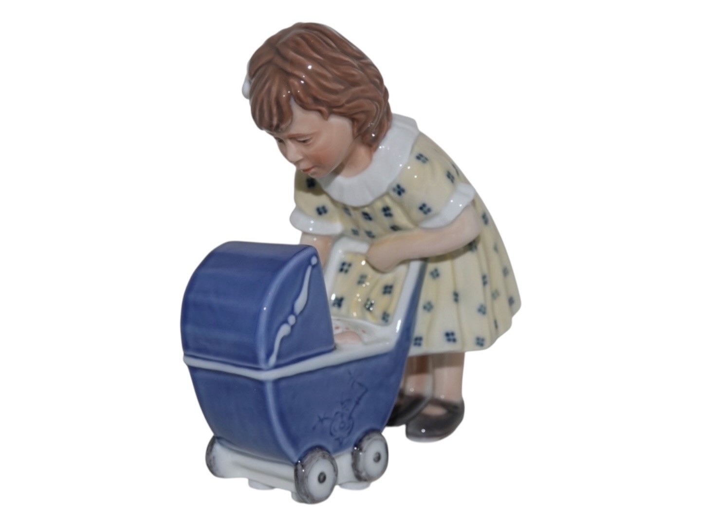Større Royal Copenhagen figur, pige med blå barnevogn.Dekorationsnummer 407.