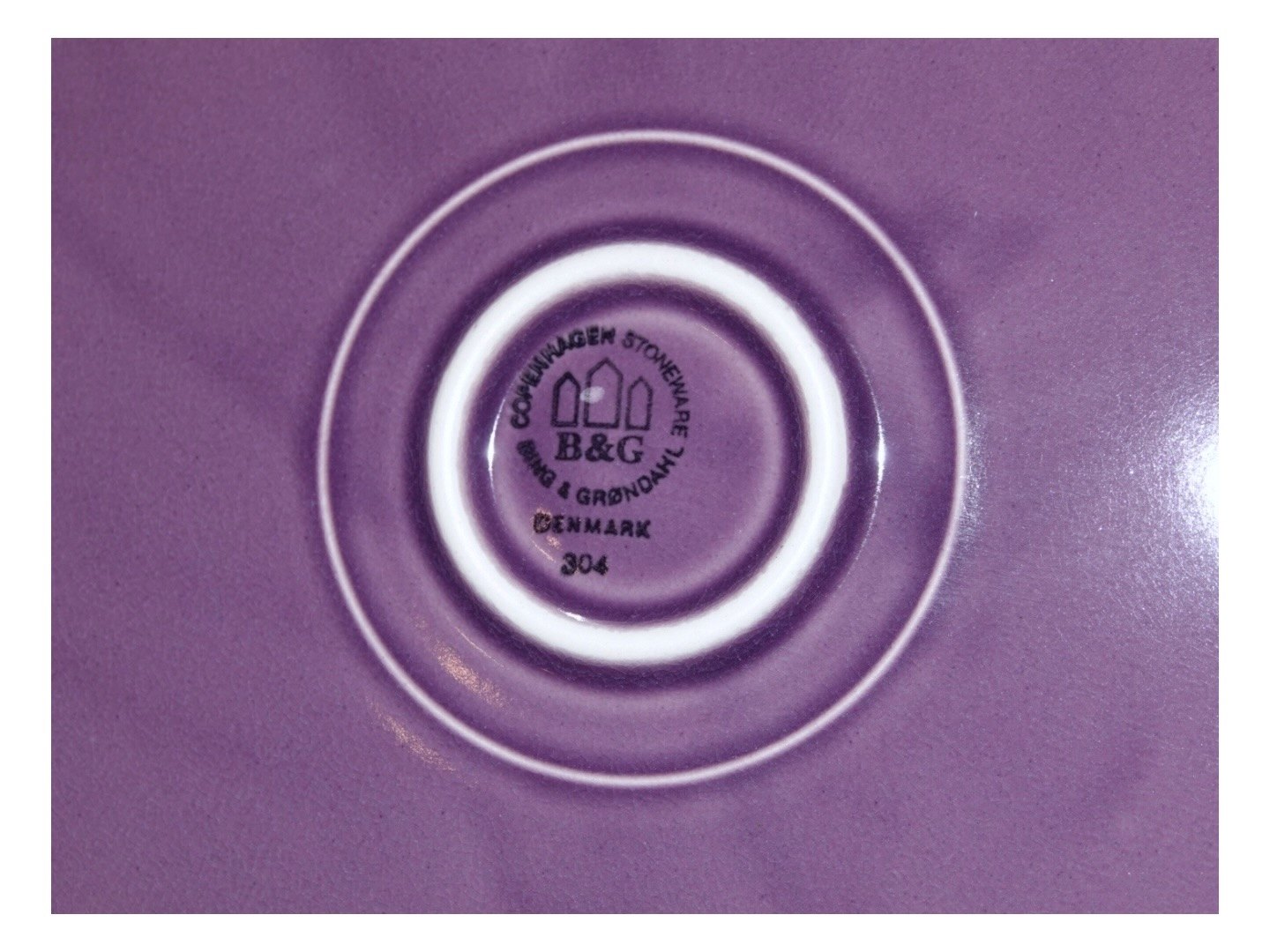 Bing & Grøndahl Cordial stentøj (også kaldet Palet), lilla rundt fad.Designet af Jens Harald Quistgaard.