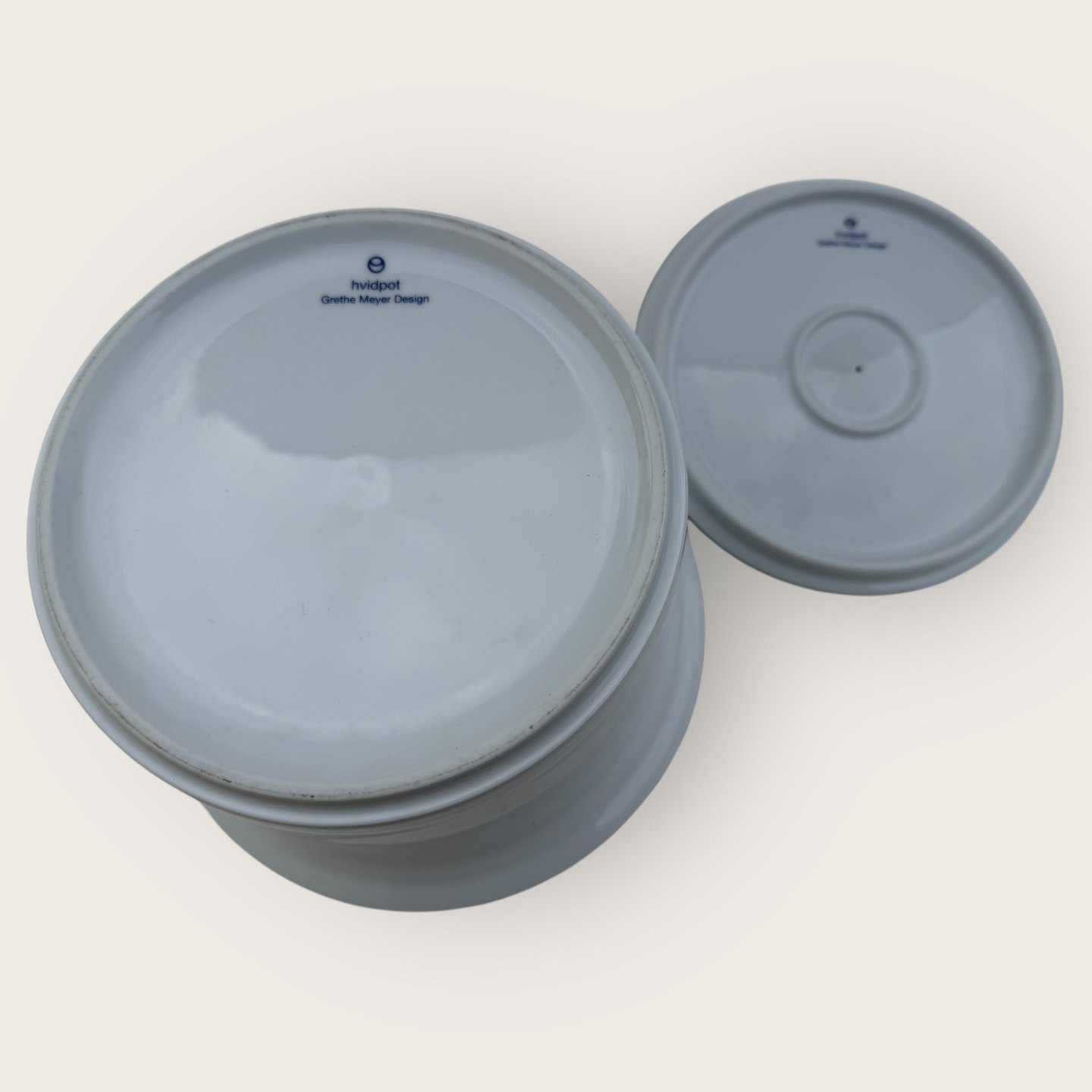 Hvidpot, Royal Copenhagen og COOP, Stor skål med låg, 22cm i diameter, 14,5cm høj, 1.sortering, Design Grethe Meyer *Perfekt stand*Lager: 1