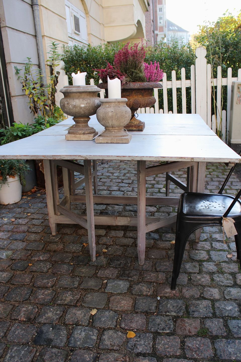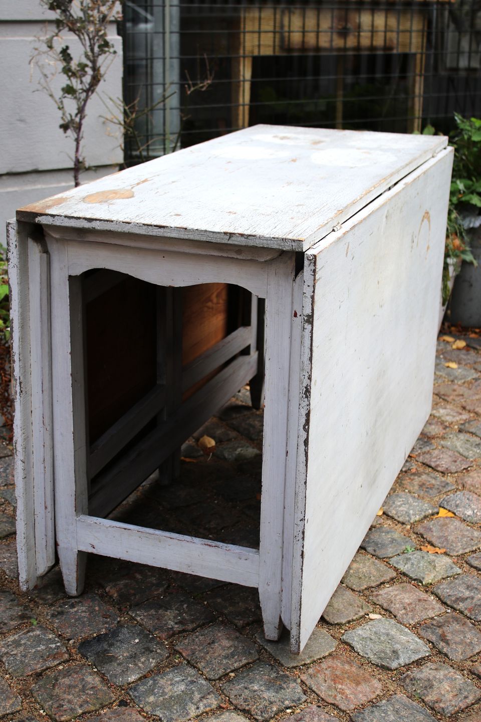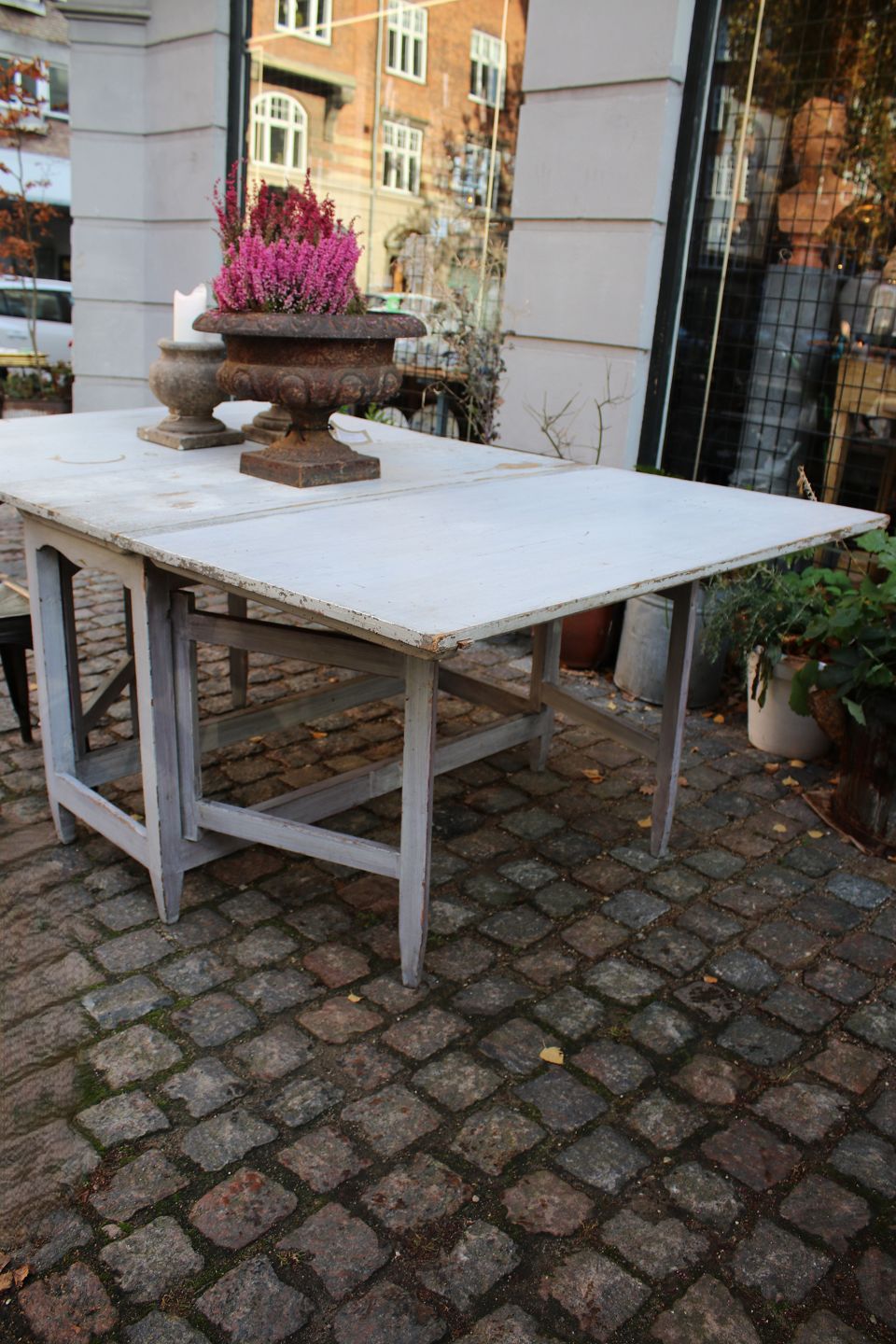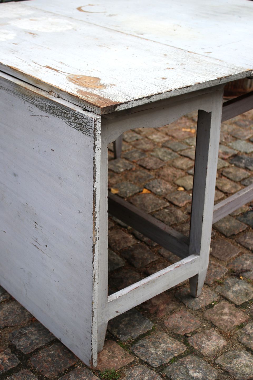 Gammelt svensk gustaviansk 1800 tals slagbord / klapbord i fin original grå farve med en super fin patina.Bordet har 2 klapper og dobbelte udtræksben , så det står meget stabilt.