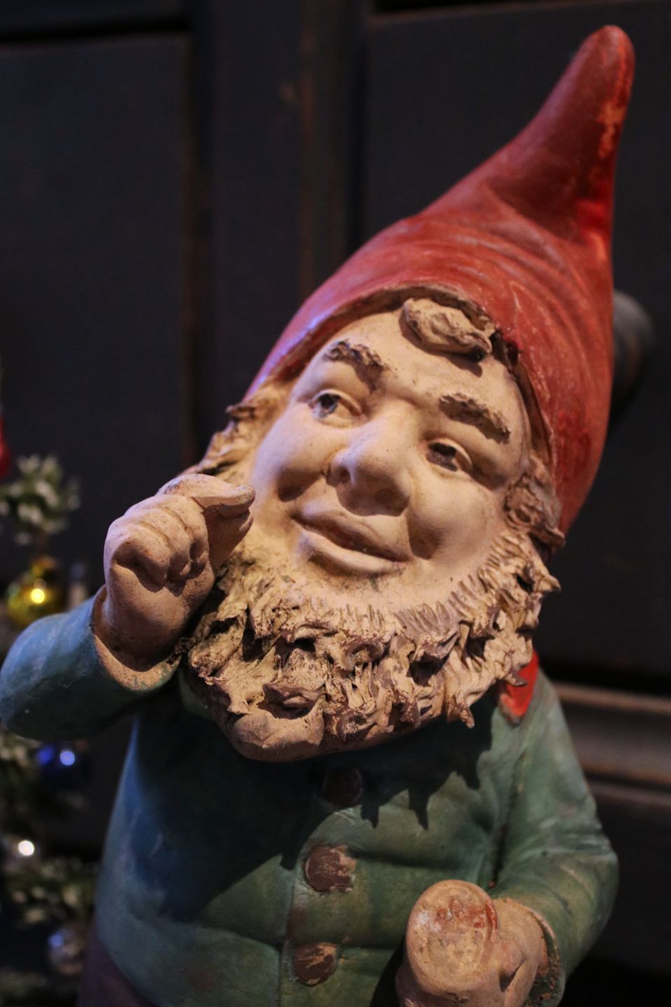 Antik terrakotta nisse med gammel bemaling og en fin patina.Højde: 36,5cm.