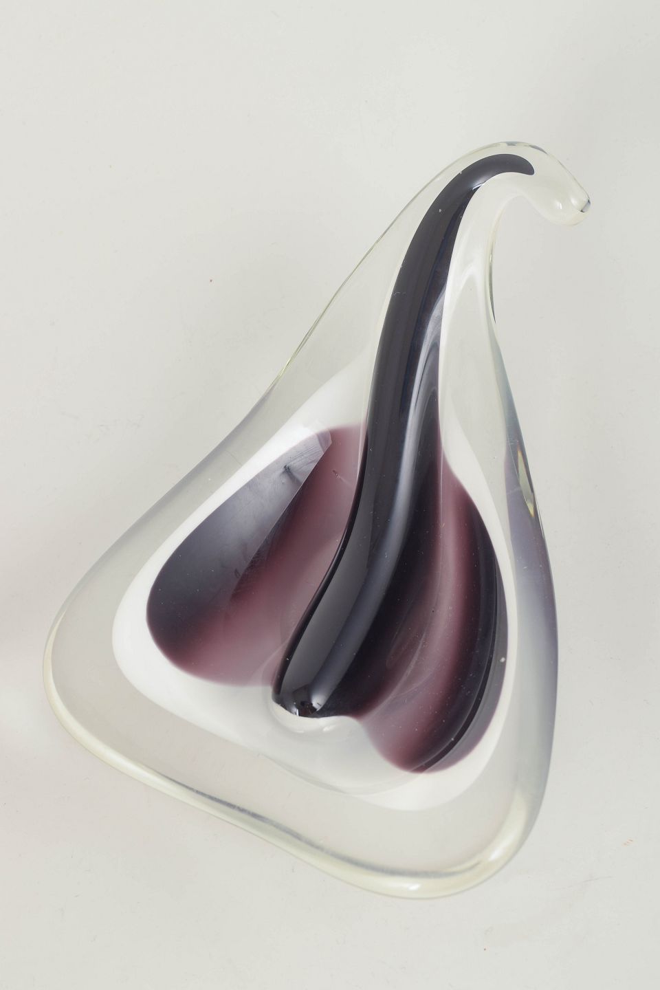 Organisk formet kunstglas skål i klart og violet tonet glas, mundblæst med den karakteristiske svungne form fra Kedelvs berømte Coquille-serie.