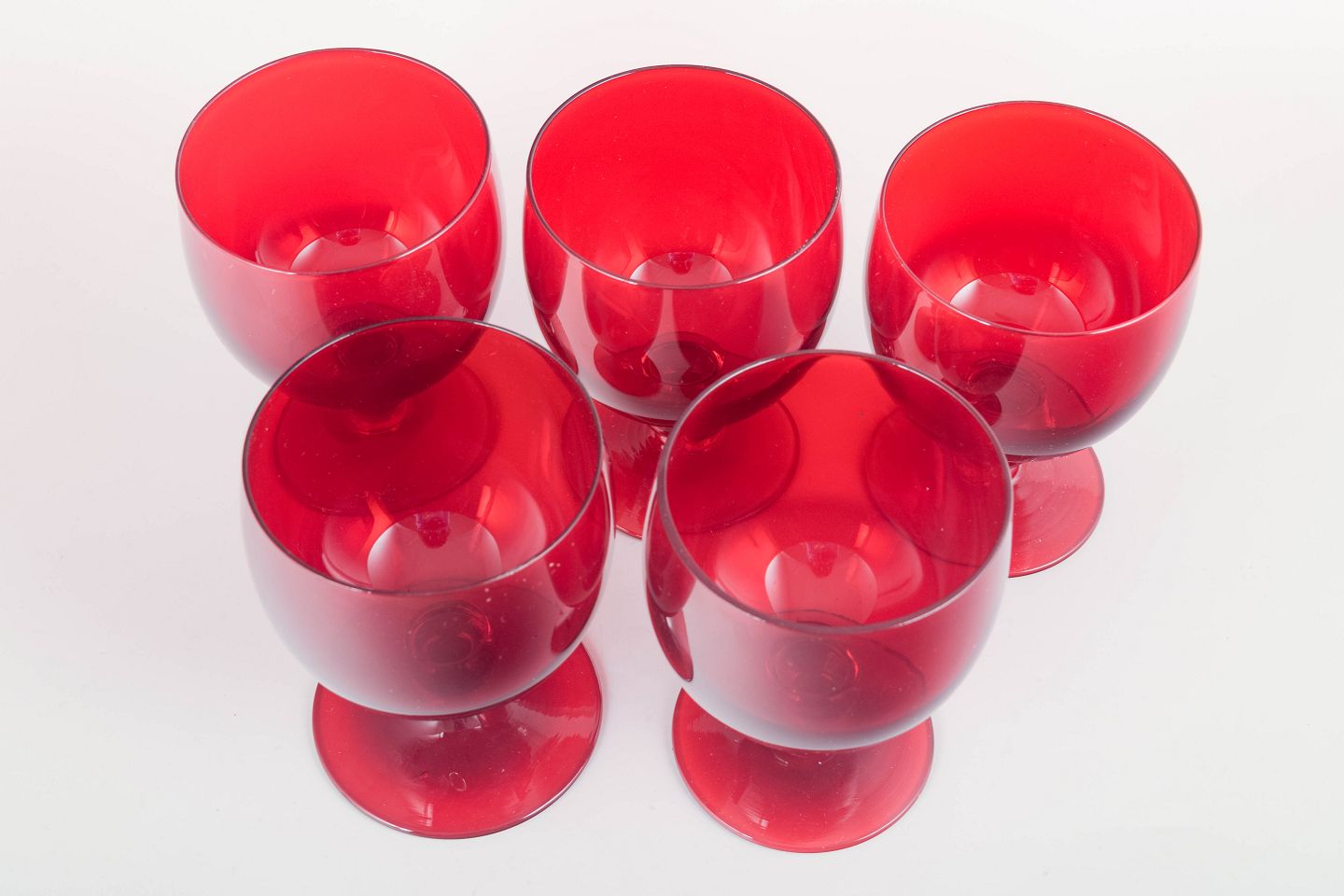 5 rødvinsglas, 1950’erne.