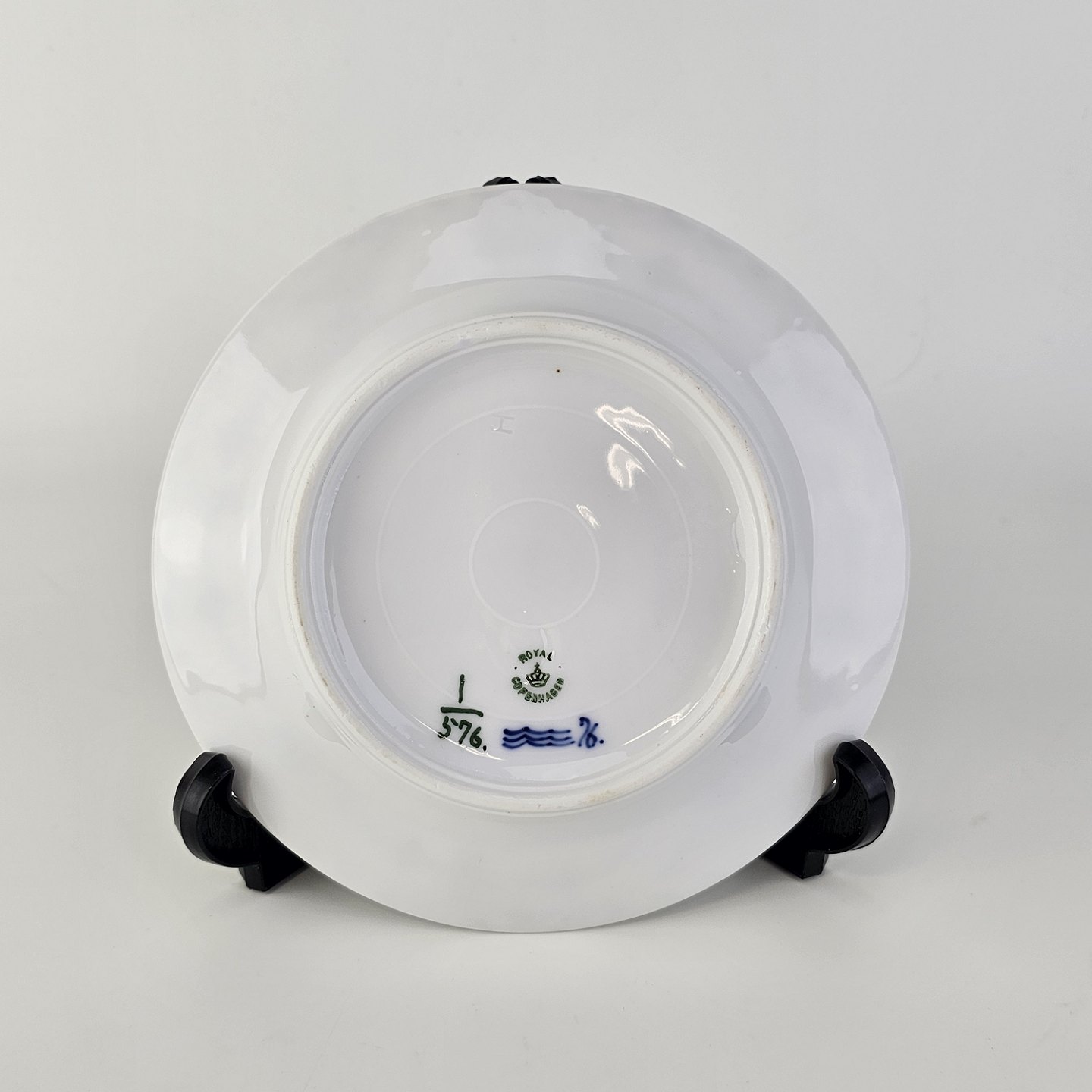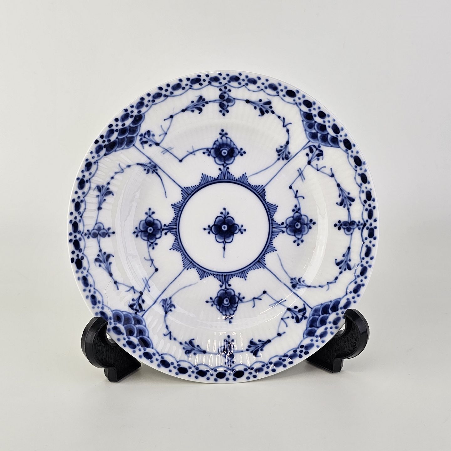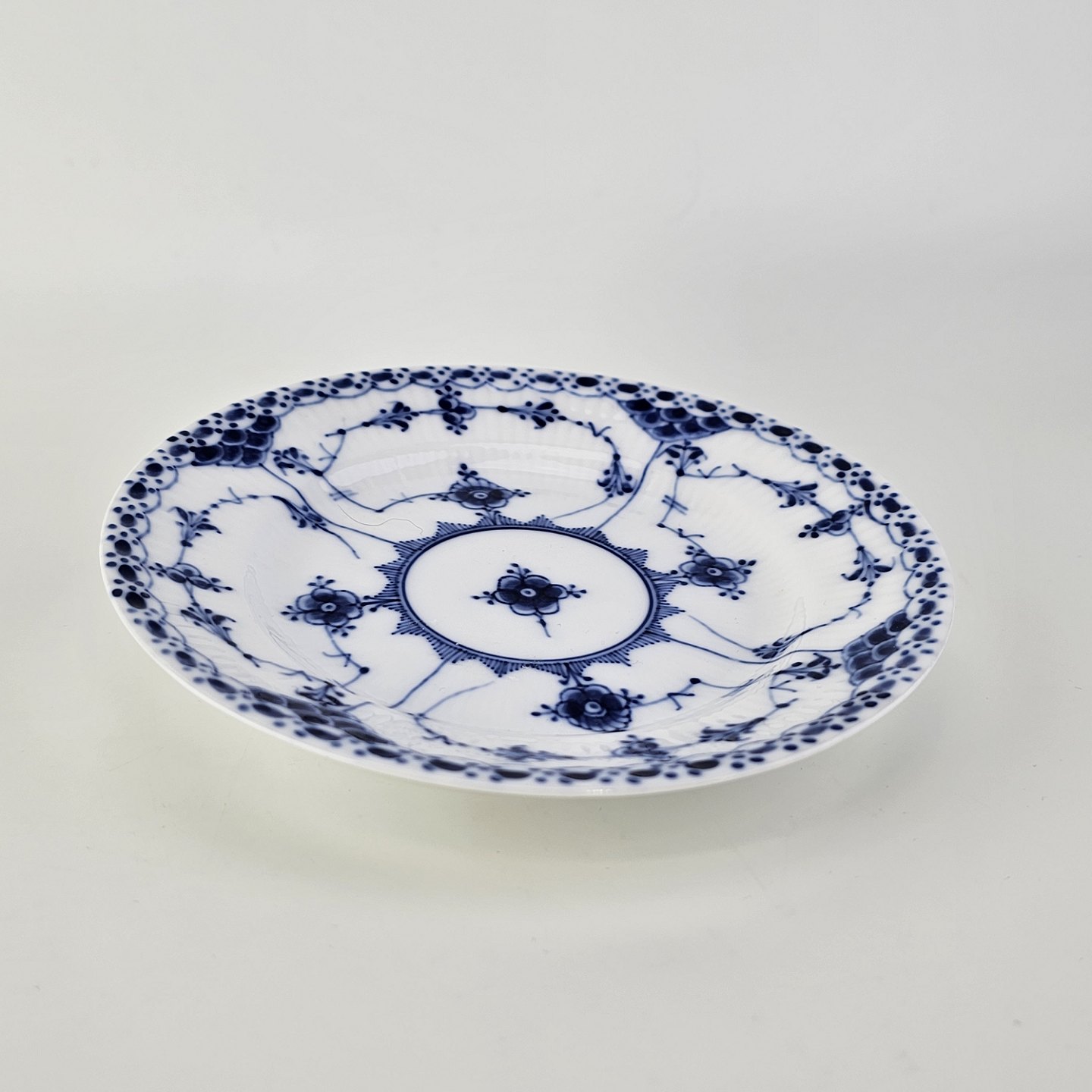 Flad sidetallerken i kongeligt porcelæn fra stellet Musselmalet HalvblondeNr. 1/576