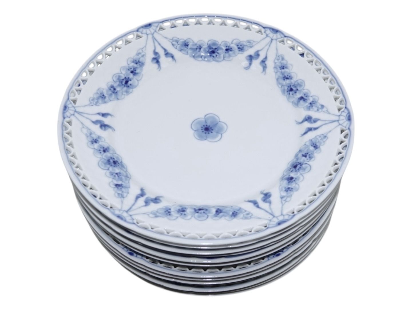 Bing & Grøndahl Empire med gennembrudt kant, frokosttallerken.Af fabriksmærket kan det udledes, at disse er produceret mellem 1970 og 1983.