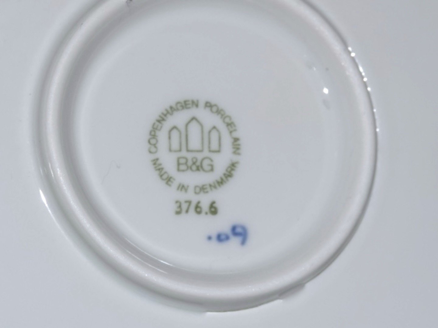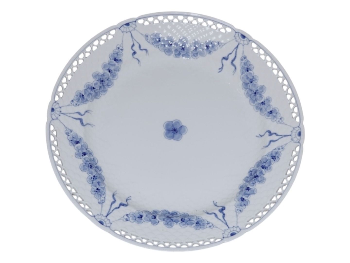 Bing & Grøndahl Empire med gennembrudt kant, stort rundt fad.Af fabriksmærket kan det udledes, at disse er produceret mellem 1970 og 1983.