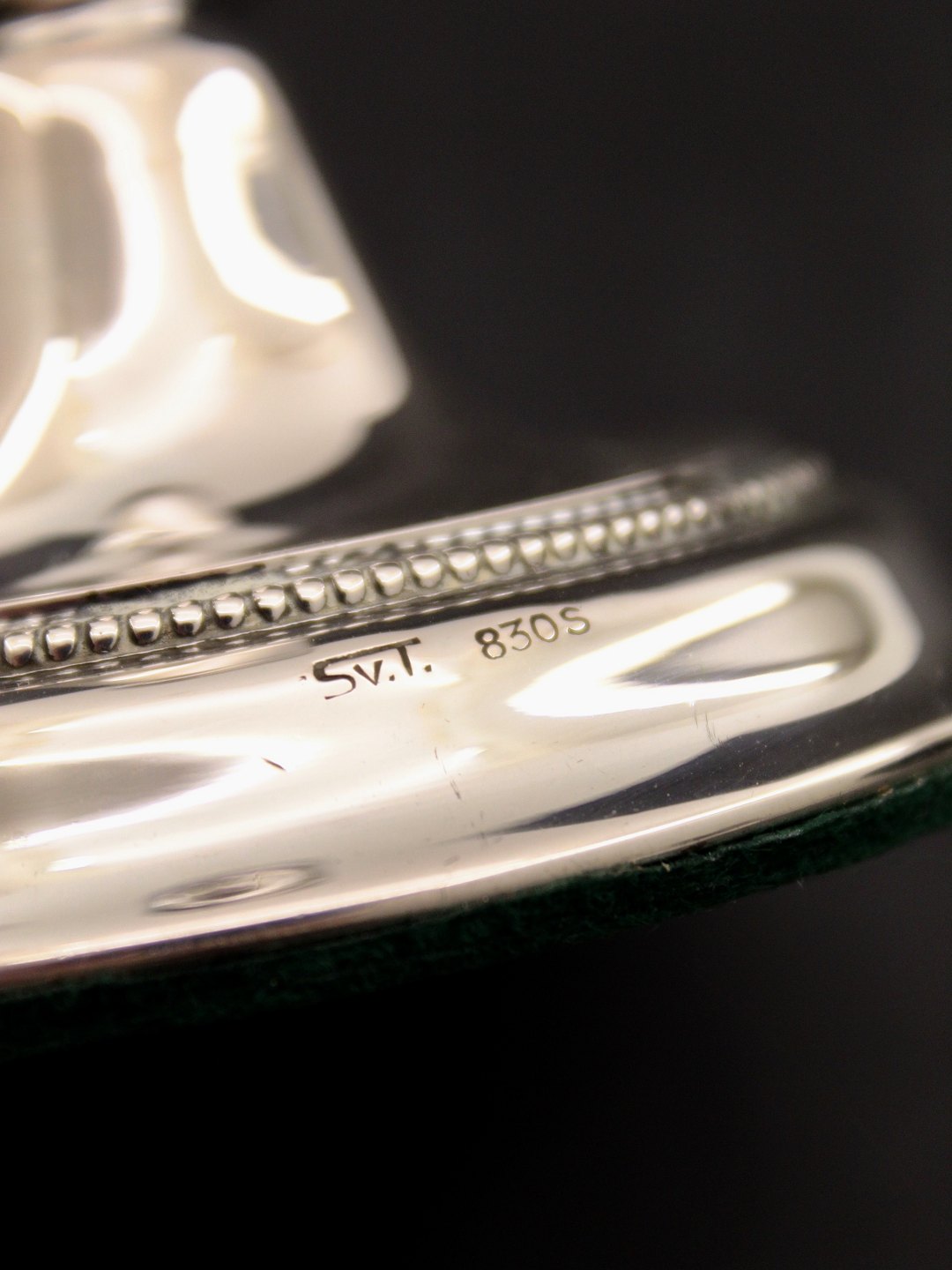 830 sølv lysestager 17,5 cm. fra sølvsmed SV. Toxværd København emne nr. 626479 Udstiller