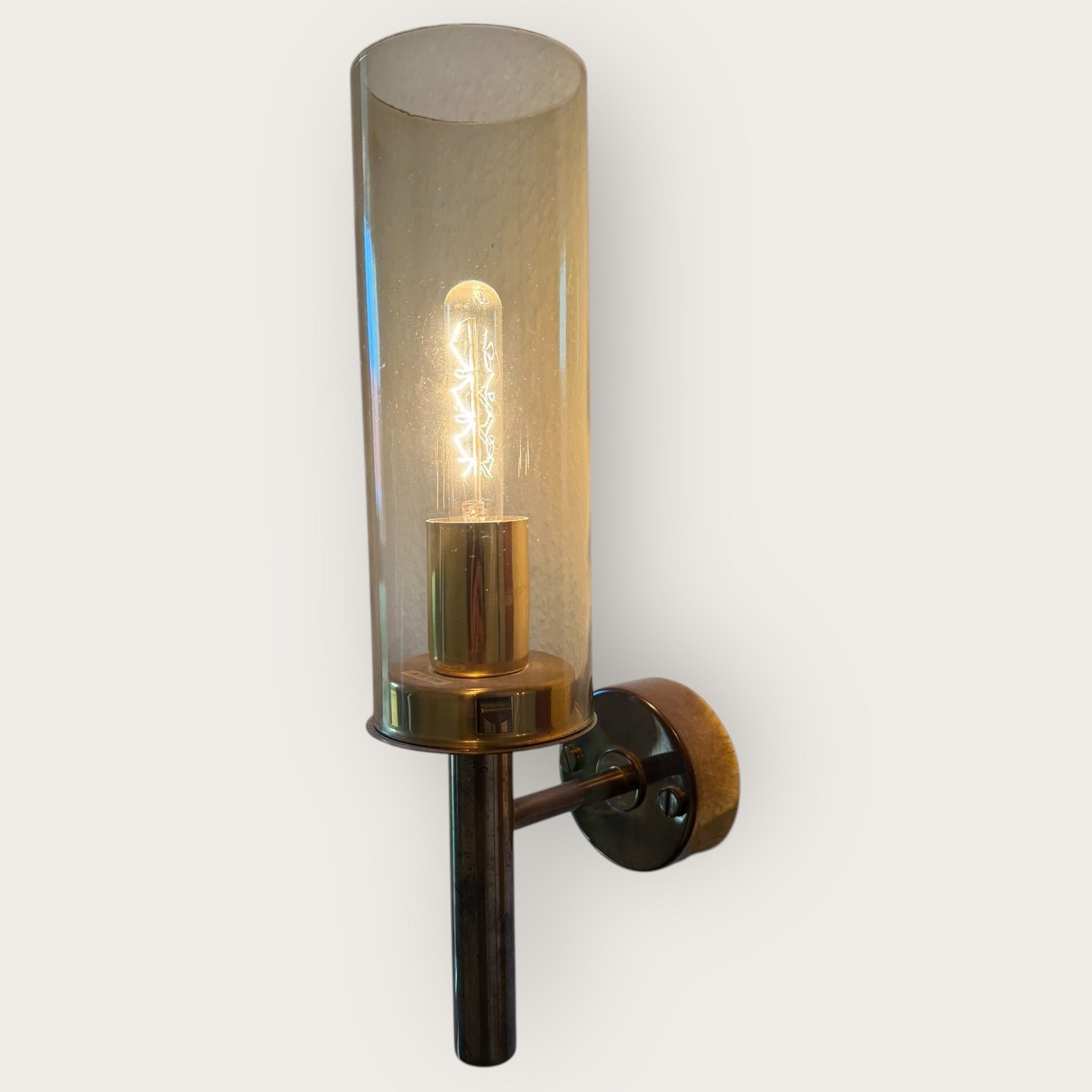 Hans-Agne Jakobsson, Væglamper i glas og messing, Model: V169/1, Markaryd, Sverige, Højde med glasskærme 37cm * Pæn stand*Lager: 2