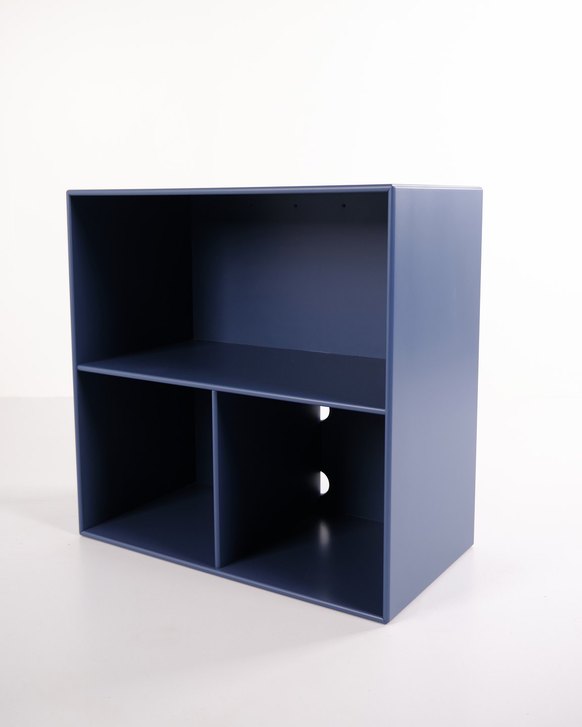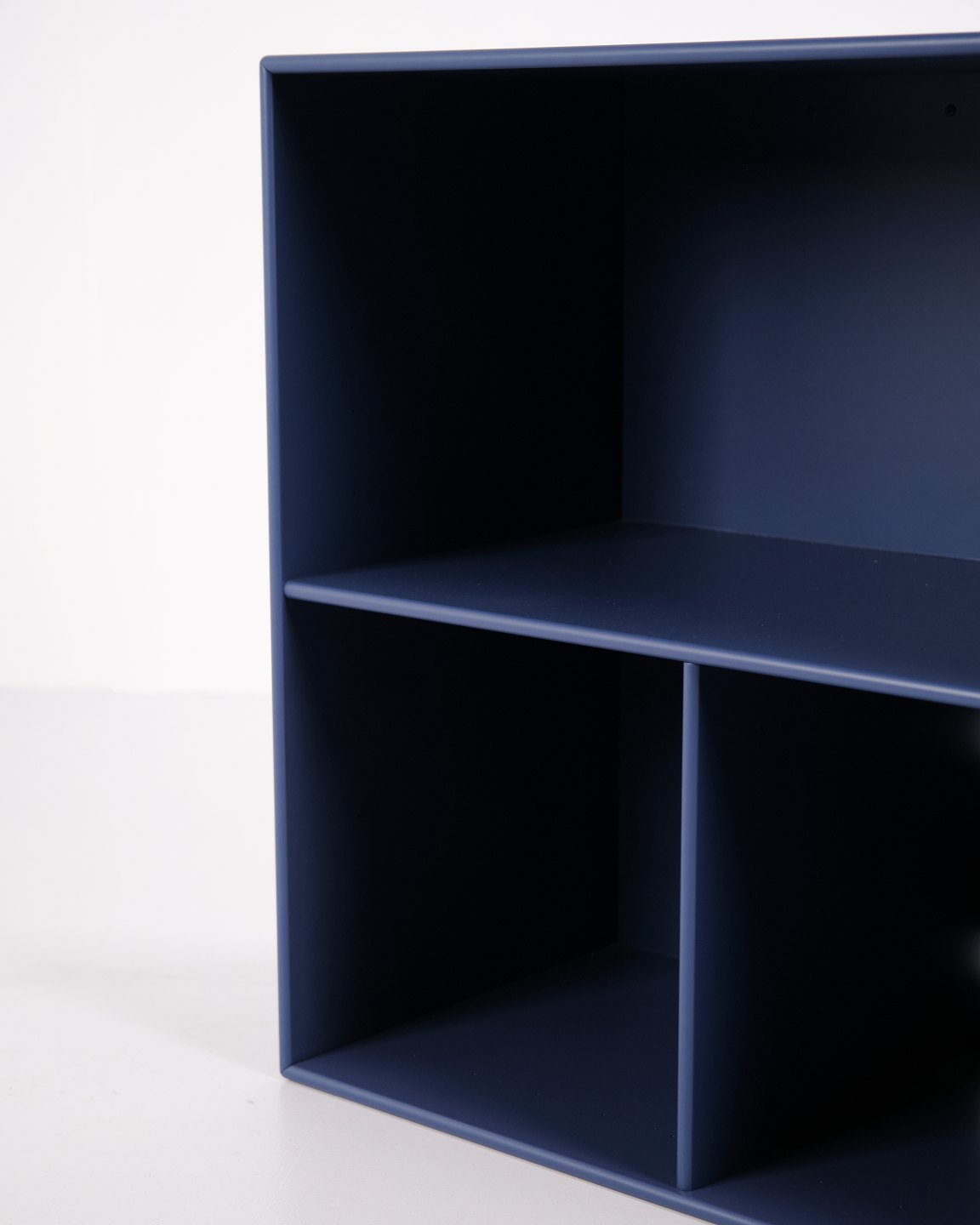 Montana bookcase in blue. Equipped with three open shelves, ideal for storage or display in the living room, office or hallway. Classic Montana module with simple structure and high functionality.— Manufacturer: Montana