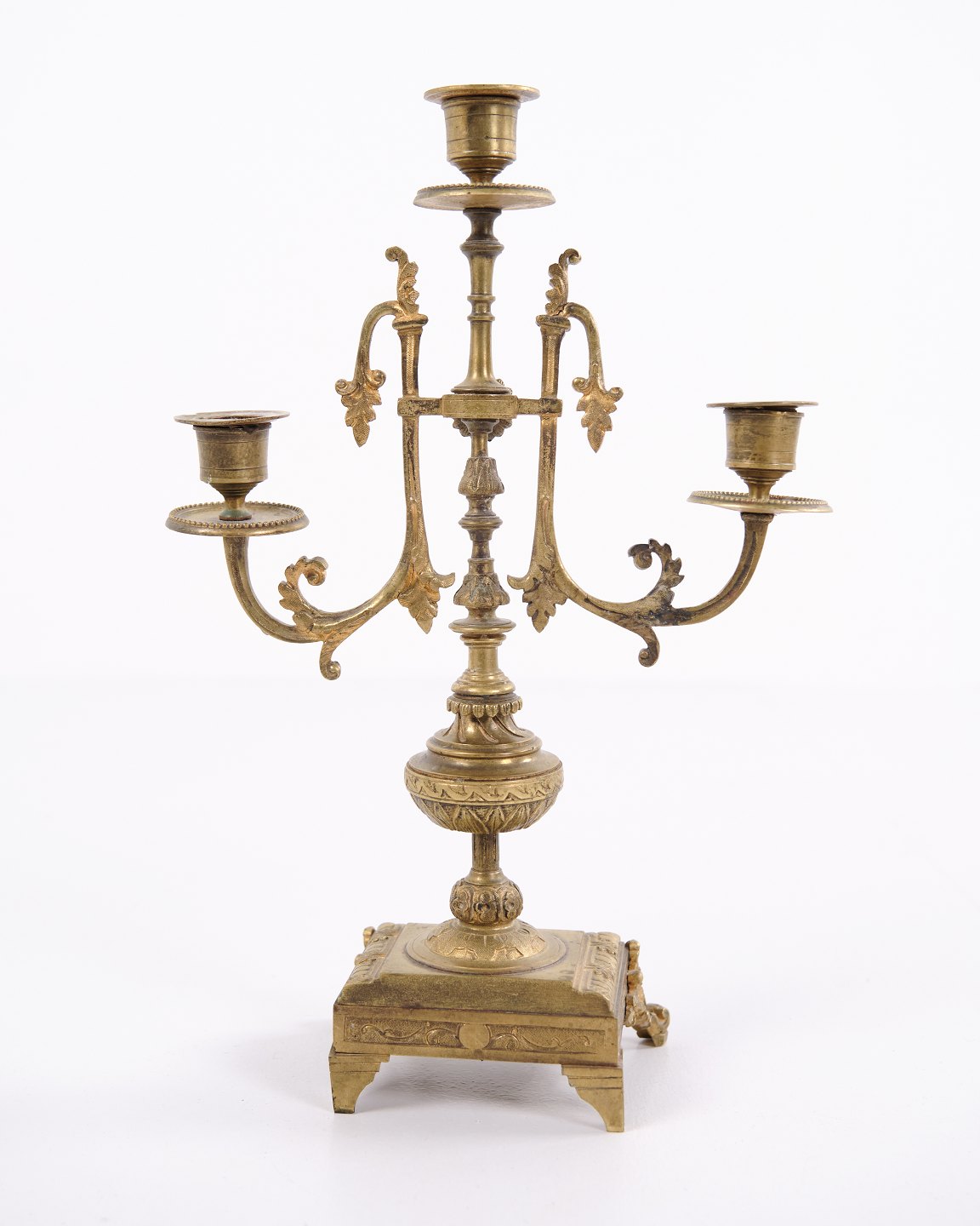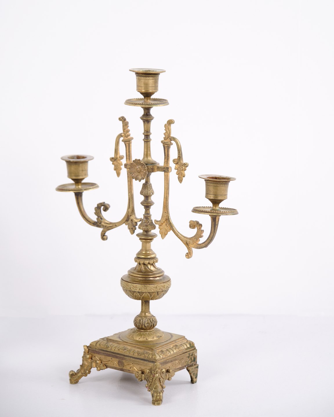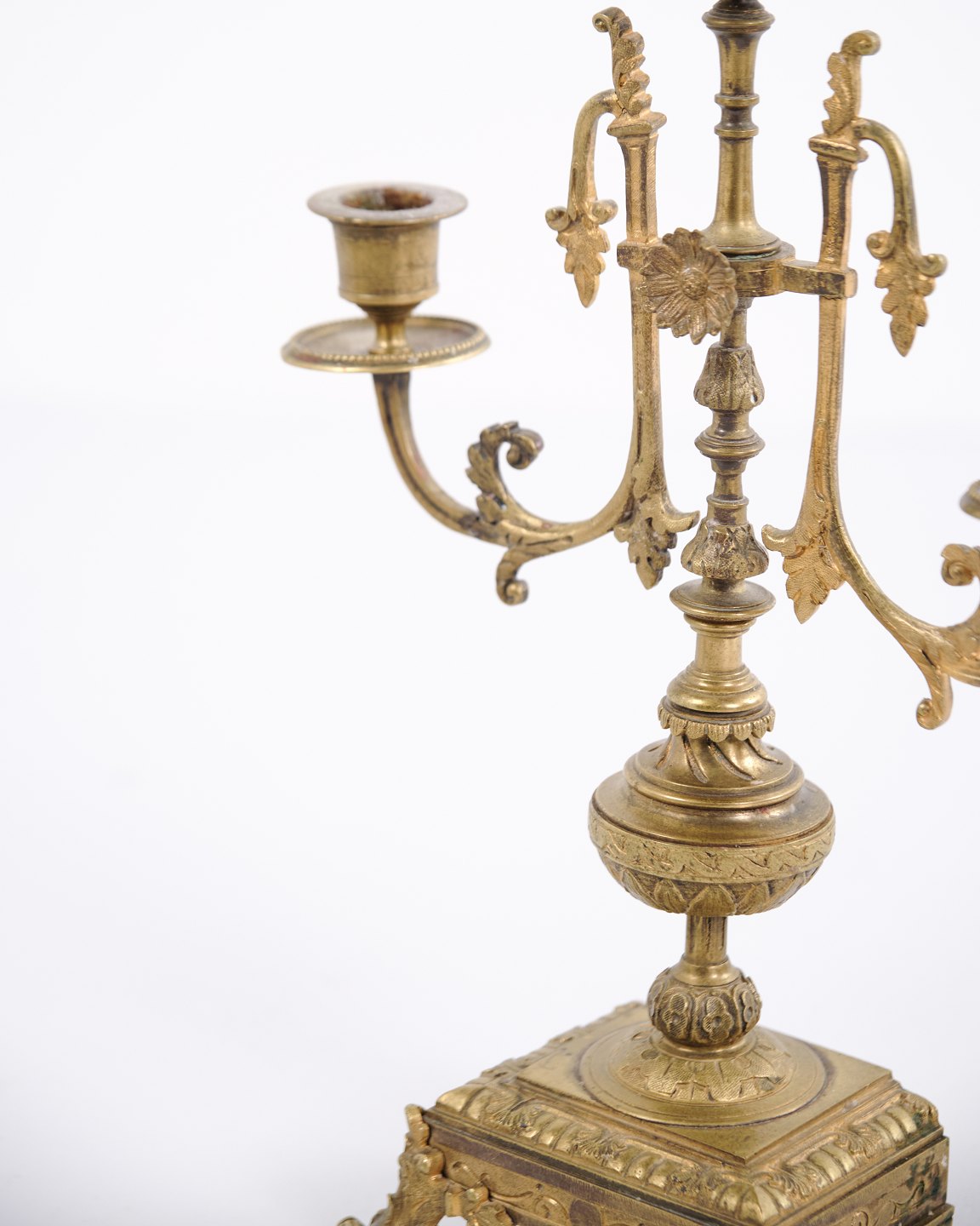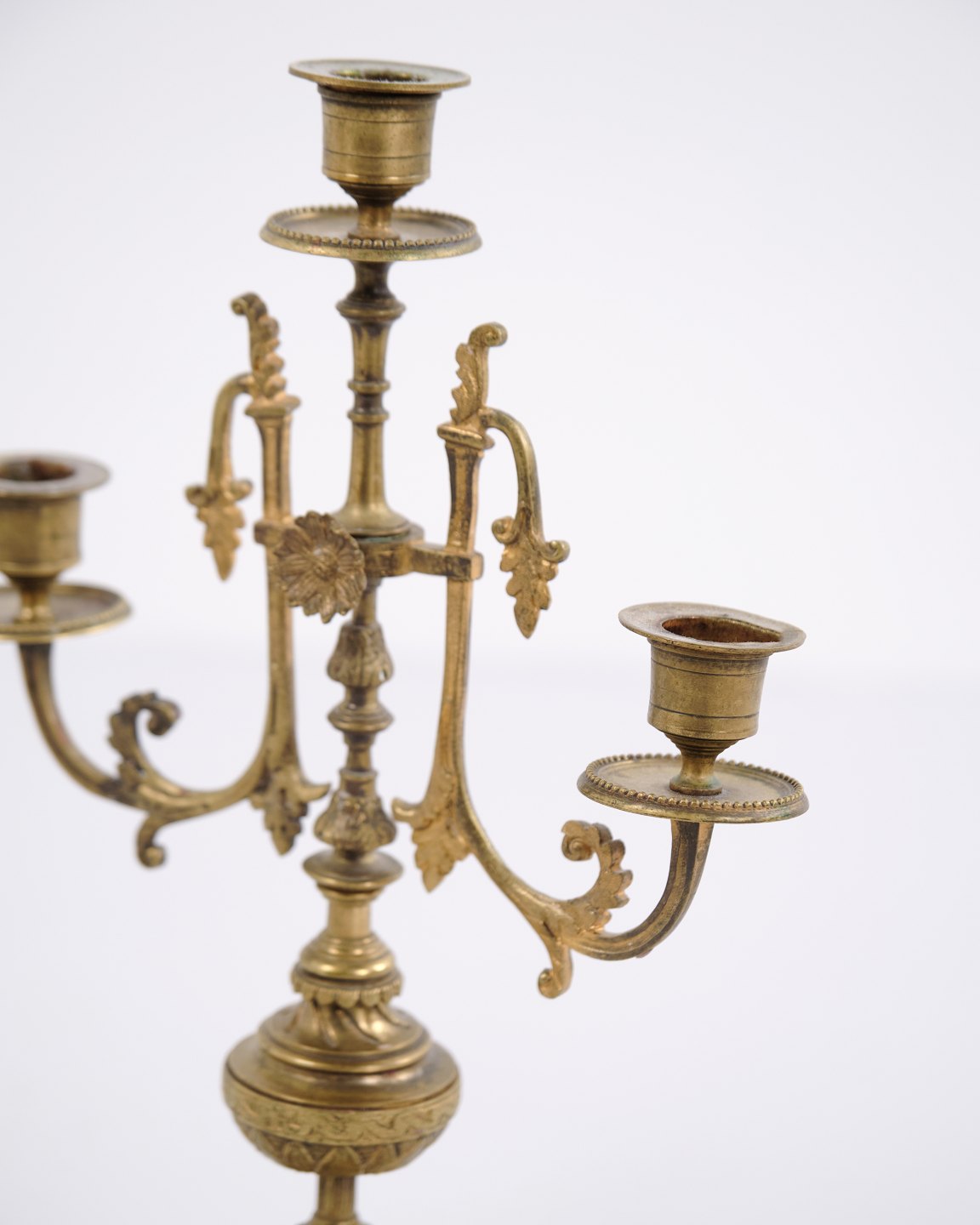 Sæt franske bronze stager fra 1890’erne. Trearmede lysestager med rige udsmykninger og fine detaljer.— Oprindelse: Frankrig