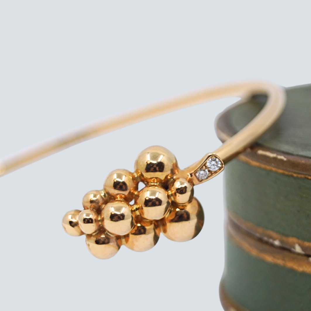 Georg Jensen; Moonlight Grapes armring i 18 kt. guld med diamanter.str. L. dia. 4,8-6,2 cm.