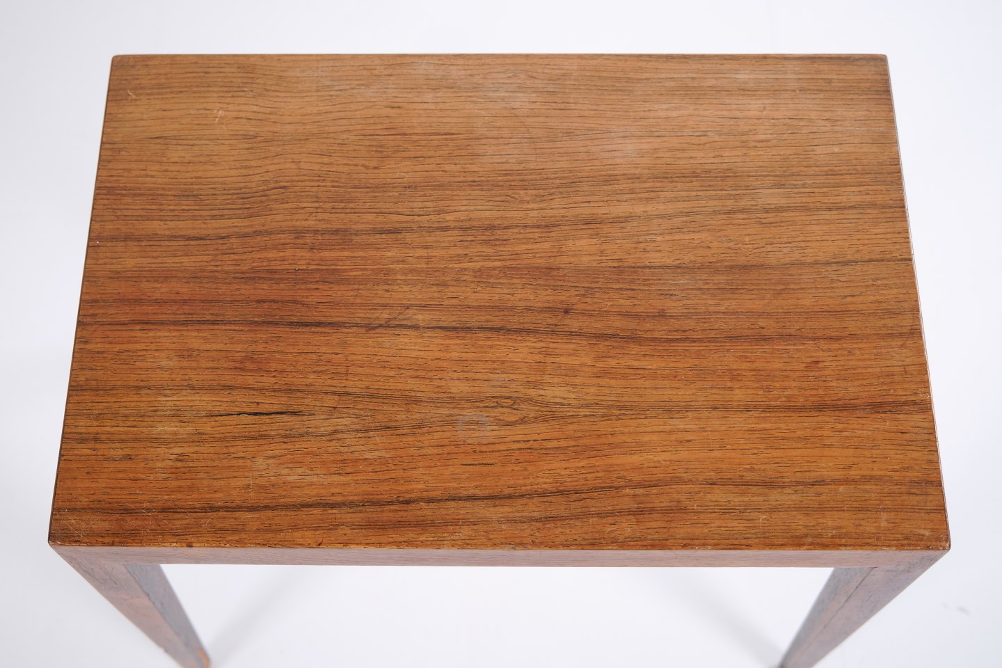 Side table or nightstand, model 41B, designed by Severin Hansen and produced by Haslev Møbelfabrik in the 1960s. Made in rosewood with the characteristic mitred joints that define Hansen’s work. An elegant and sought-after piece of Danish design.— Designer: Severin Hansen