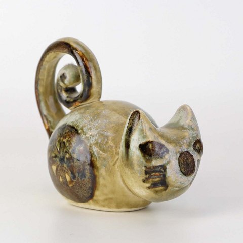 Figur i glaseret keramik med motiv af en katProducent Søholm keramik