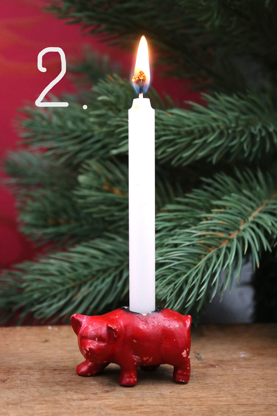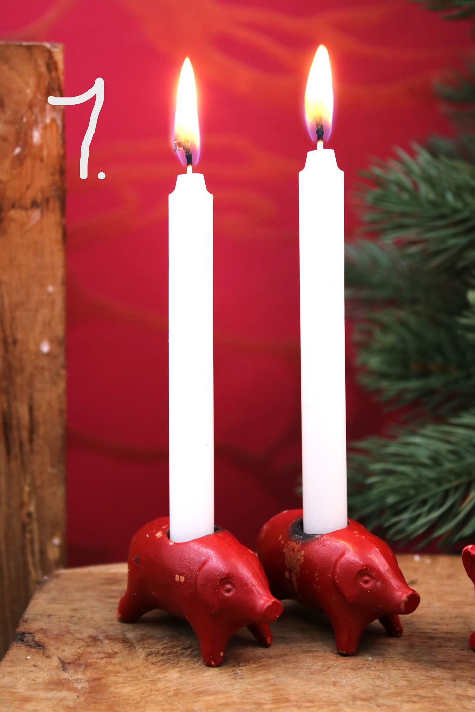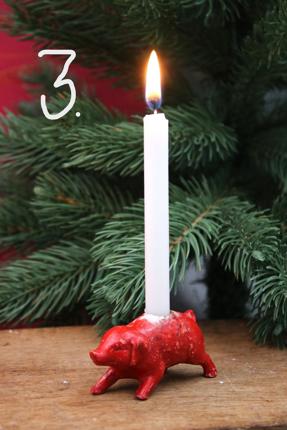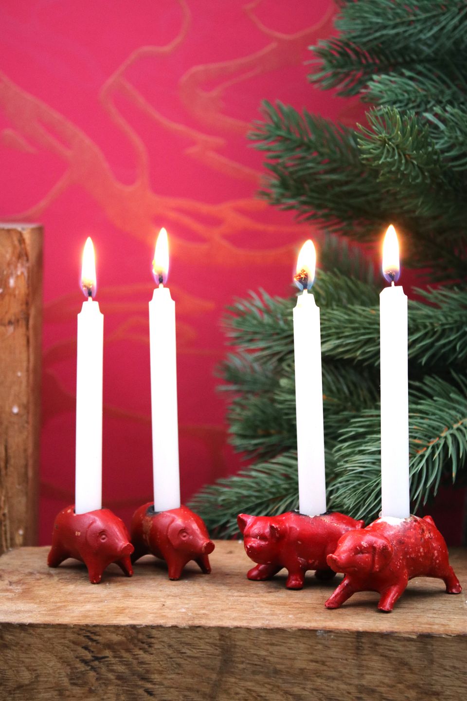 Gamle julegrise i bemalet porcelæn med plads til et lille julelys.Gris nr.1) H: 3cm. L: 6cm. - 2 stk. haves på lager.