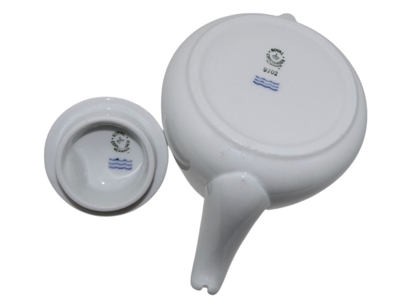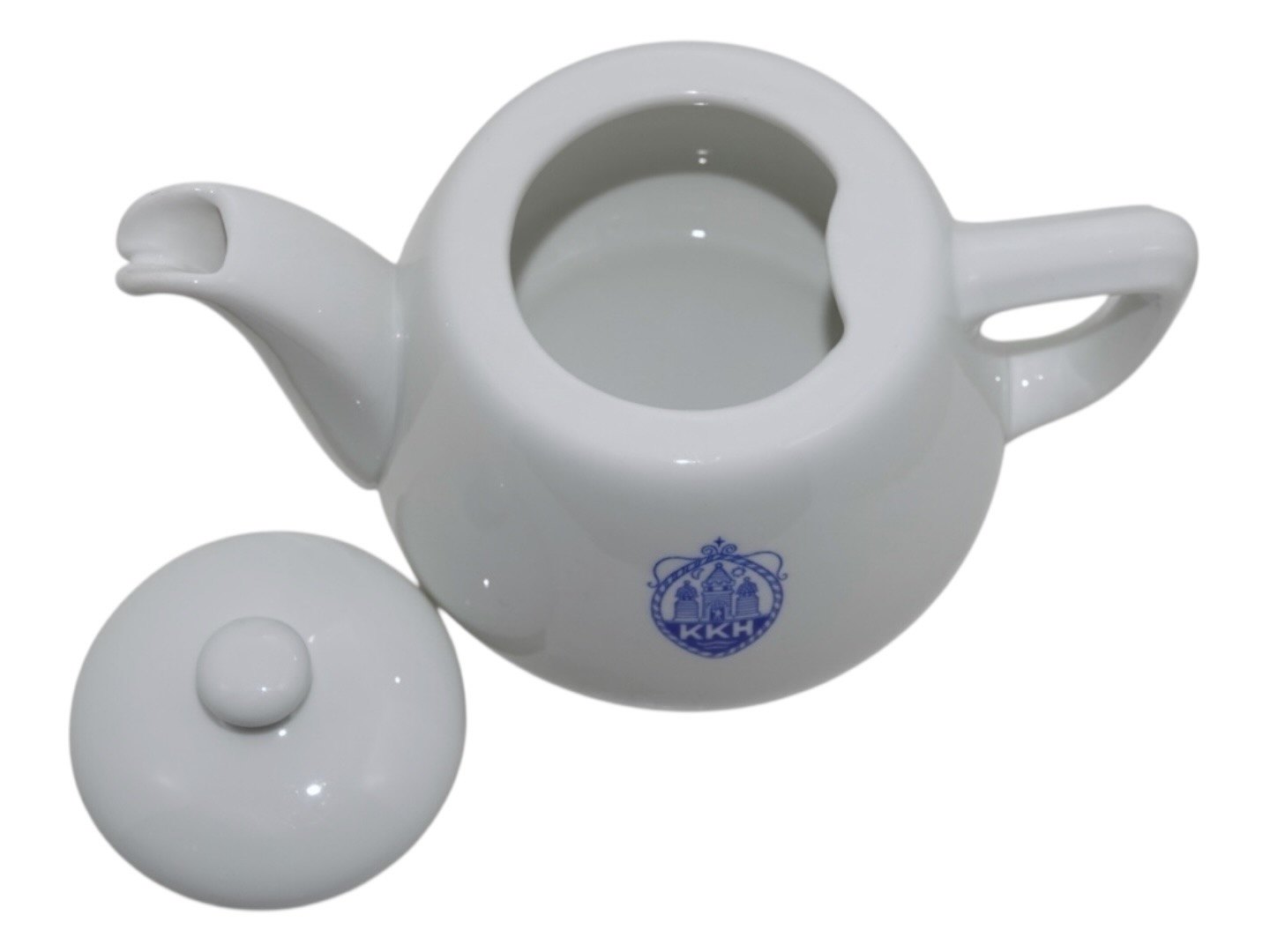 Royal Copenhagen, lille hvid tekande i tykt hotelporcelæn med logo fra Københavns Kommune Hospital (KKH).1. sortering.