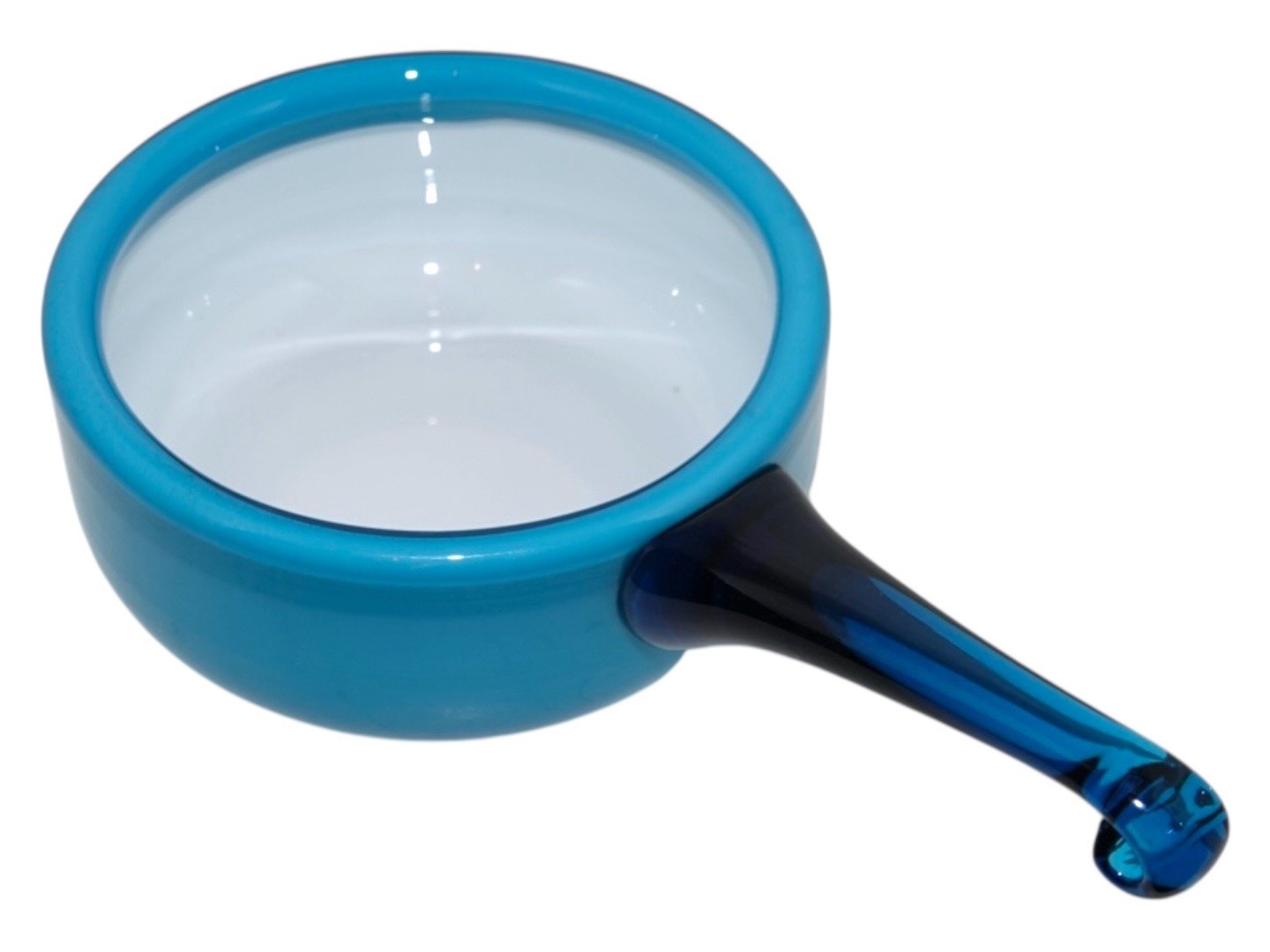 Holmegaard Palet, lille blå sildeskål stadig med rest af original Holmegaard etikette.Designet af Michael Bang i 1973.