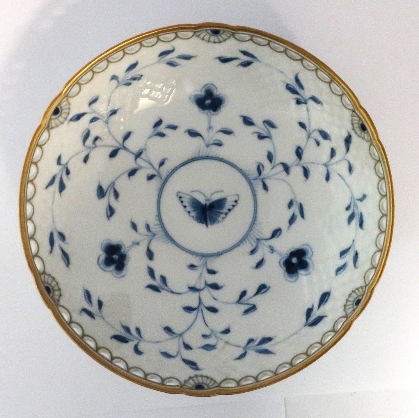Bing & Grøndahl. Sommerfugl med guld. Rund skål med gennembrudt bort. Diameter 20 cm. Højde 5 cm. (1 sortering). Udstiller