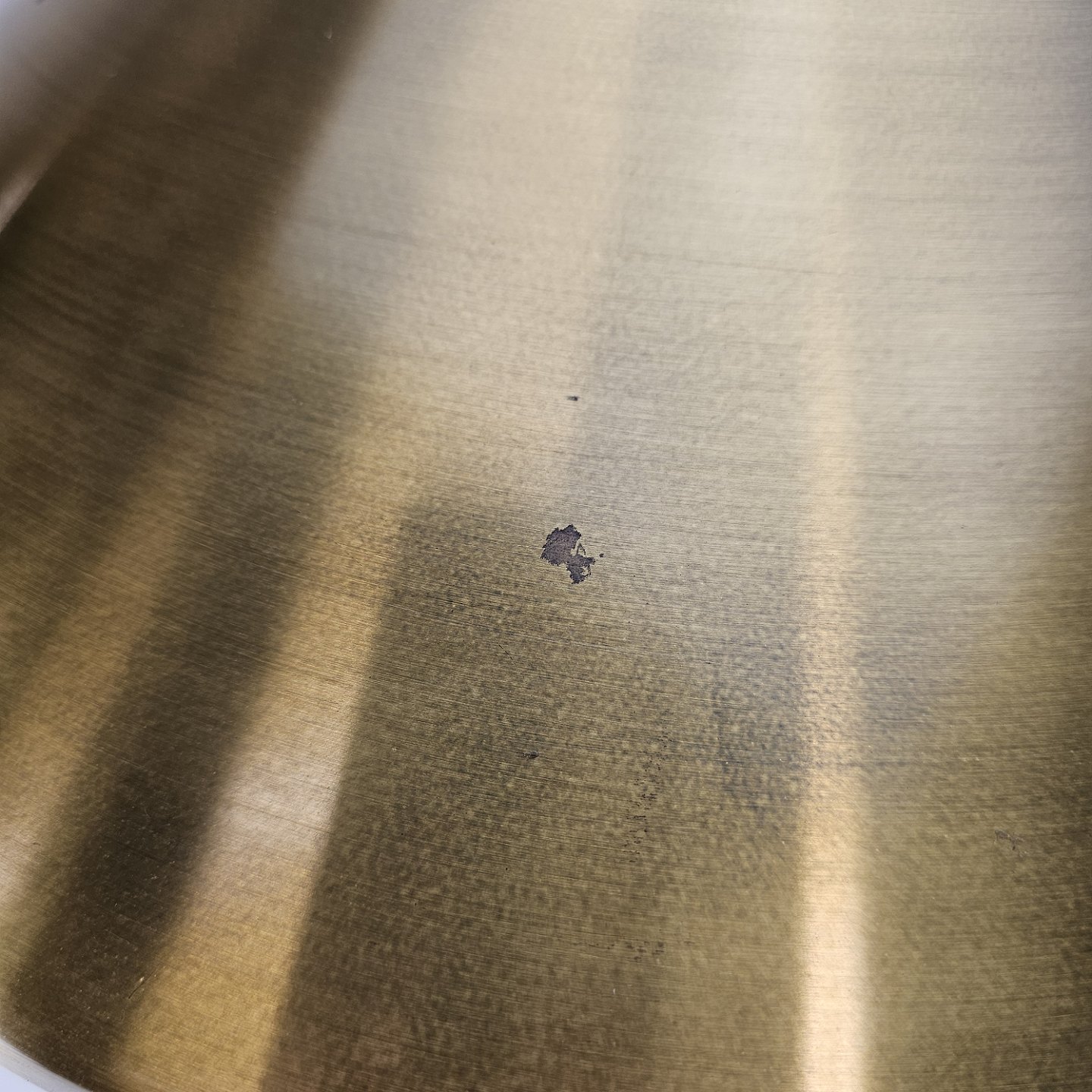 Fremstår med brugsspor i form af pletter på foden og afmærkninger på indersiden af skærmen