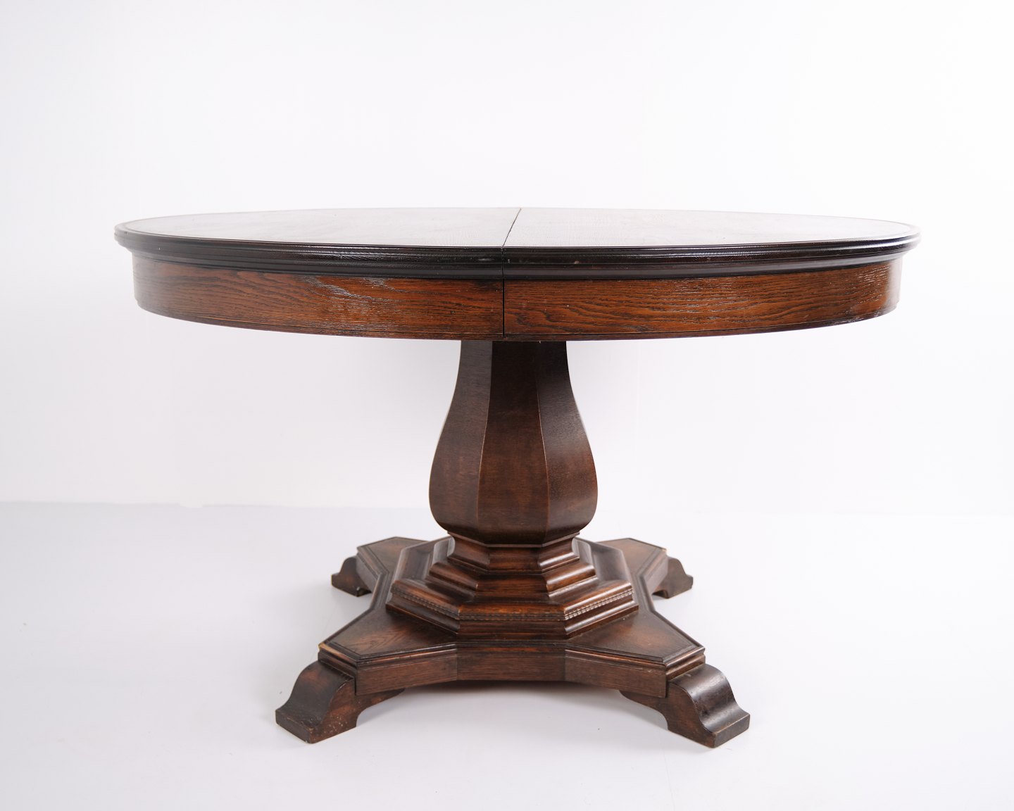 Sideboard or dining table in Empire style from the 1820s, crafted in mahogany as a classic pedestal table with a rectangular top. A decorative and functional piece with period-typical design, suitable for both dining rooms and serving areas.— Period: 1820s