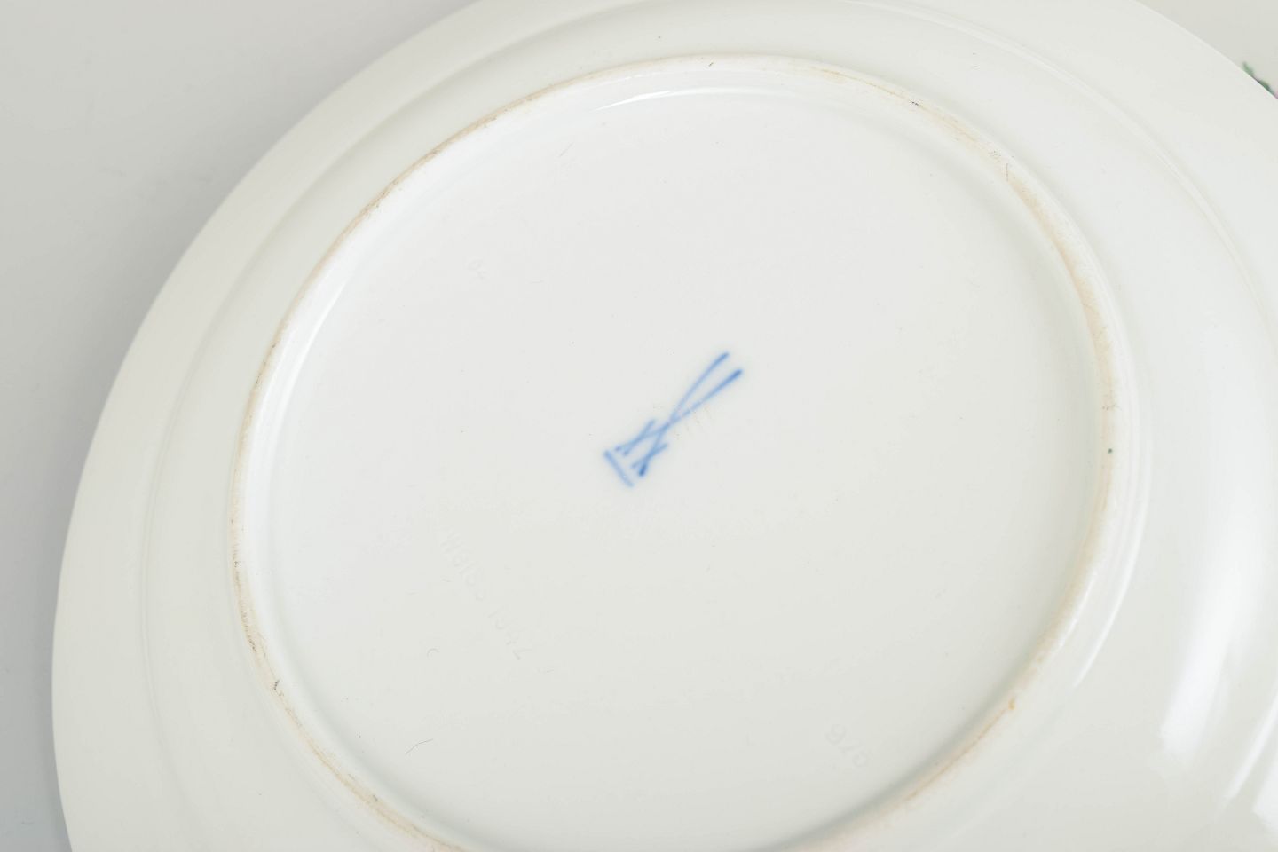 Meissen, Tyskland, sæt af seks middagstallerkener.Smukke Meissen porcelænstallerkener med håndmalede polykrome blomsterdekorationer langs randen og i midten. Klassiske, let svungne former i traditionel Meissen stil.