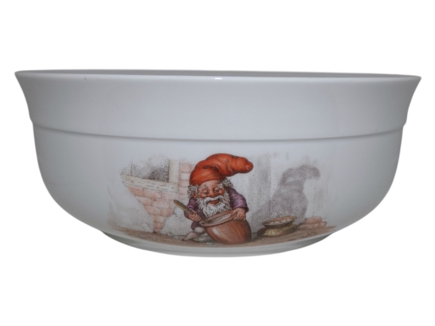 Bing & Grøndahl, sjælden skål til risengrød eller ris a'la mande dekoreret med julenisser.Af fabriksmærket kan det udledes, at denne er produceret mellem 1970 og 1983.