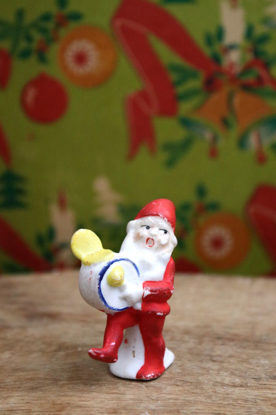Små gamle biskuit nisser med instrumenter. H: 5,5cm.1) med tromme 2) med trompet. 3) med fløjte.