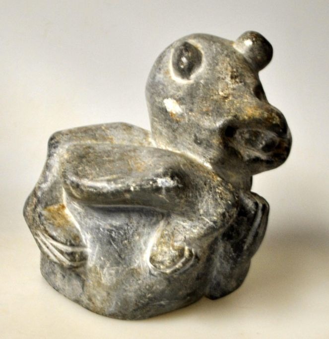 Grønlandsk fedtstensfigur. Fabeldyr, 20. årh. H.: 13 cm. L.: 11,5 cm. Svagt signeret.Emne nummer: 28610