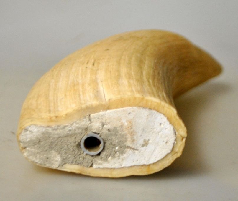Grønlandsk narhvals tand, 19./20. årh. L.: 13 cm. Udfyld, så den kan monteres på en plade.Emne nummer: 28619