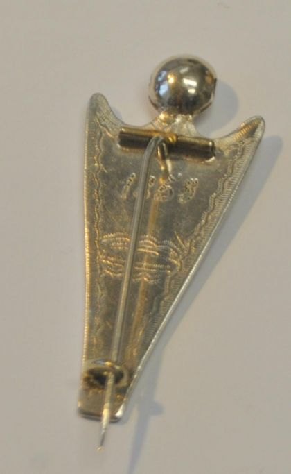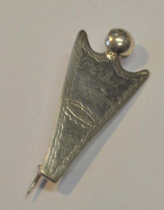 Antik sølvbrosche, 19. årh. Danmark. Med inspiption: PCRS og stendnavn, på bagside: 1859. Længde.: 5 cm.Emne nummer: 28629
