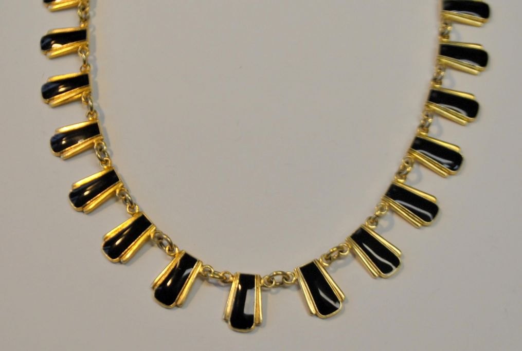 Volmer Bahner & Co, København (1962 - 1987): Halskæde forgyldt sterling med emalje. Stemplet. L.: 39 cm.Emne nummer: 28639