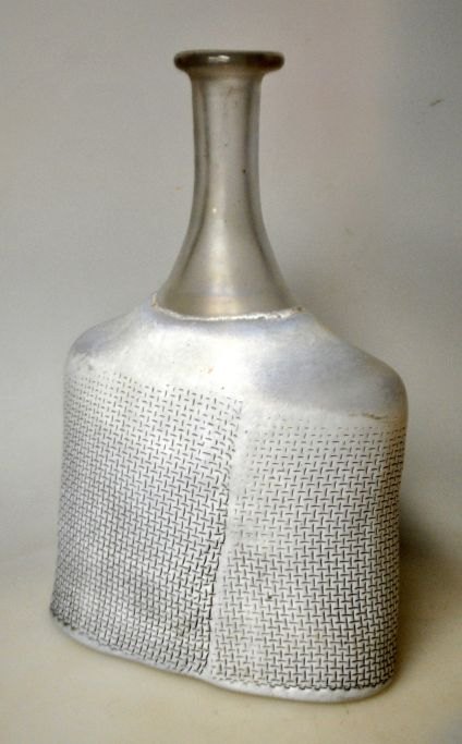 Kosta Boda "Network" flaske no. 47863, Design: Bertil Vallien, 1978, Sverige. Frostet glas med net design. Signeret. H: 24 cm. B: 15,5 cm.Emne nummer: 28644