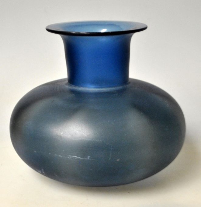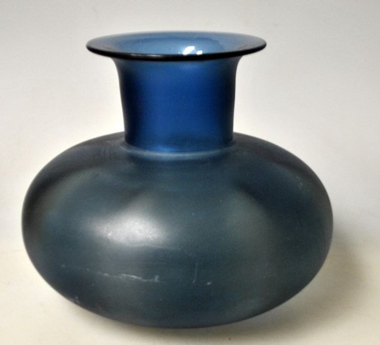 Glas kunstner (20. årh.): Vase. Unika. Blåt glas. Signeret: B S C 2000. H.: 12 cm.Emne nummer: 28665
