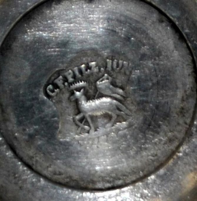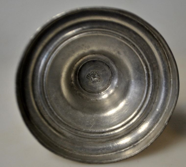 Empire lysestage i tin, 19. årh. Stemplet: C. F. Pilz, jun. H.: 17 cm.Flot stand!