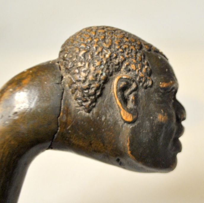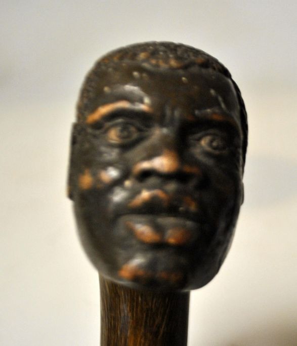 Spadsererstok i træ med udskåret ansigt, 19. årh. L.: 90 cm.Emne nummer: 28673