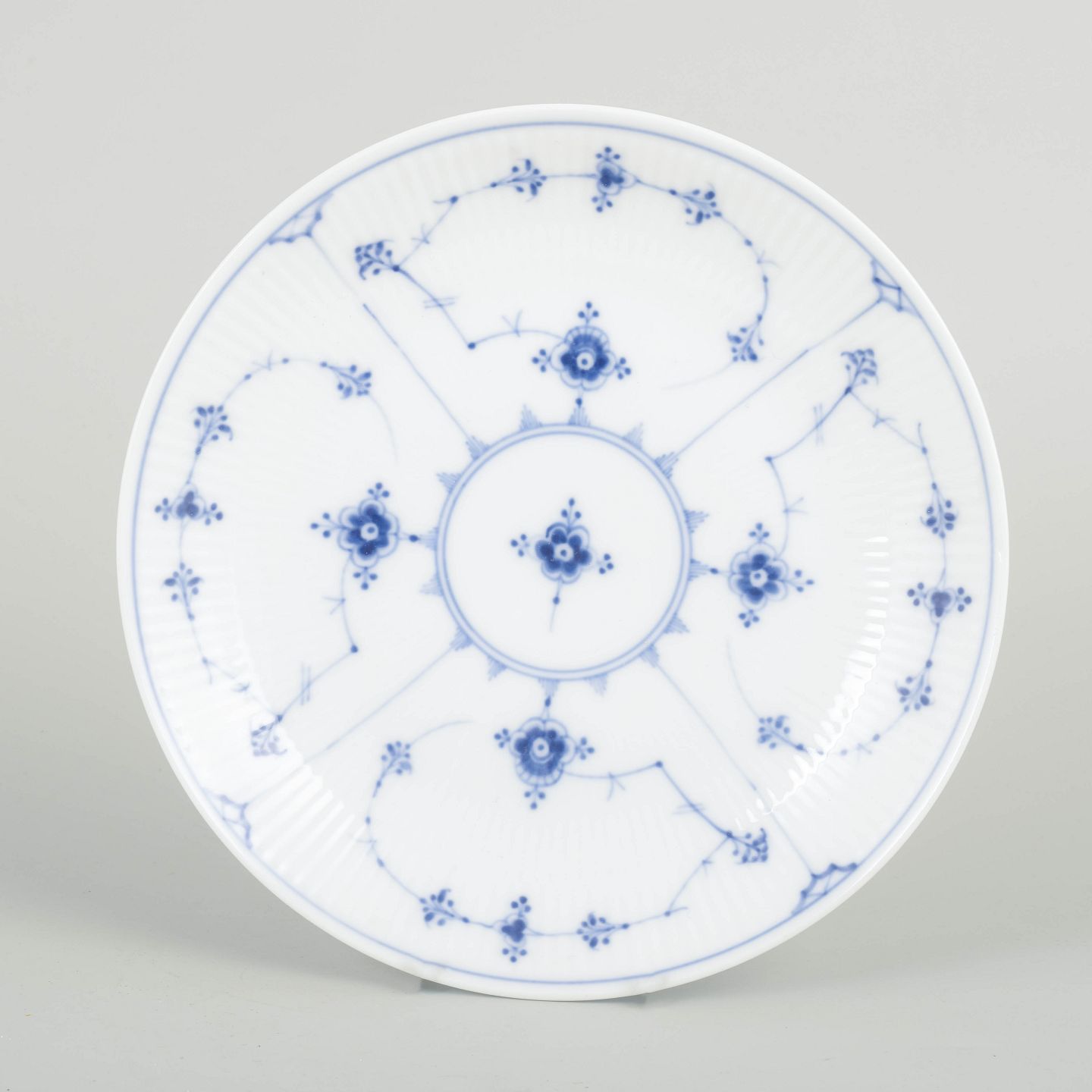 Musselmalet riflet blev introduceret i 1775 og er Royal Copenhagens mest ikoniske stel. De tidlige eksemplarer, som dette, fremstår med fine, håndmalede variationer, der gør hvert stykke unikt og eftertragtet blandt samlere.