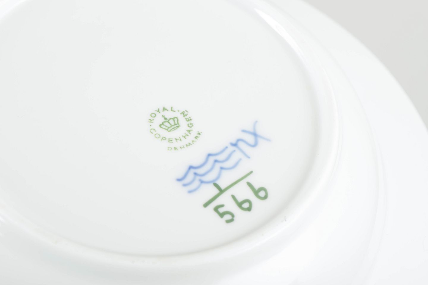 Royal Copenhagen musselmalet halvblonde, model 1/566.Fire dybe tallerkener, 1980’erne.