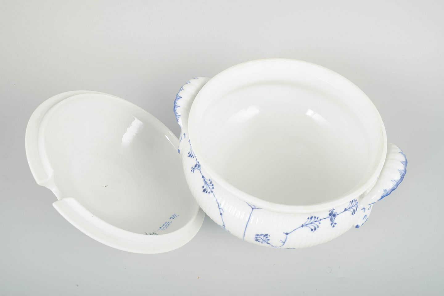 Royal Copenhagen musselmalet riflet, model 1/223.Stor suppeterrin, 1920’erne.