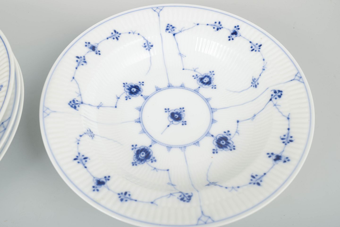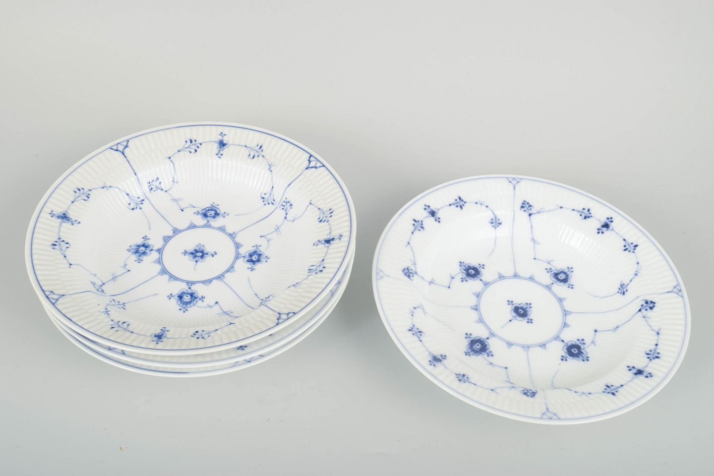 Royal Copenhagen Blue Fluted, model 1/165.Set of four deep plates.